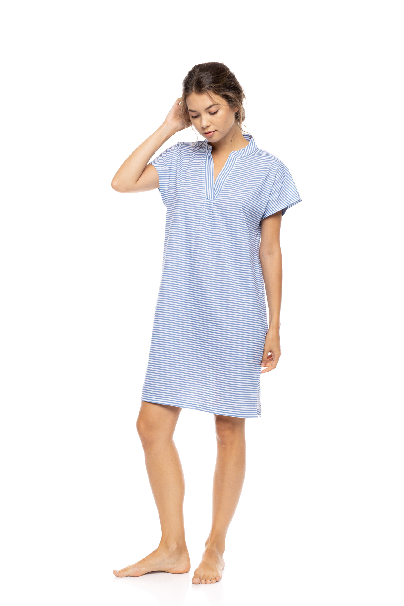 Γυναικείο Νυχτικό Pink Label - MARINIERE PRINT - Kοντομάνικο με V Λαιμόκοψη - Cotton