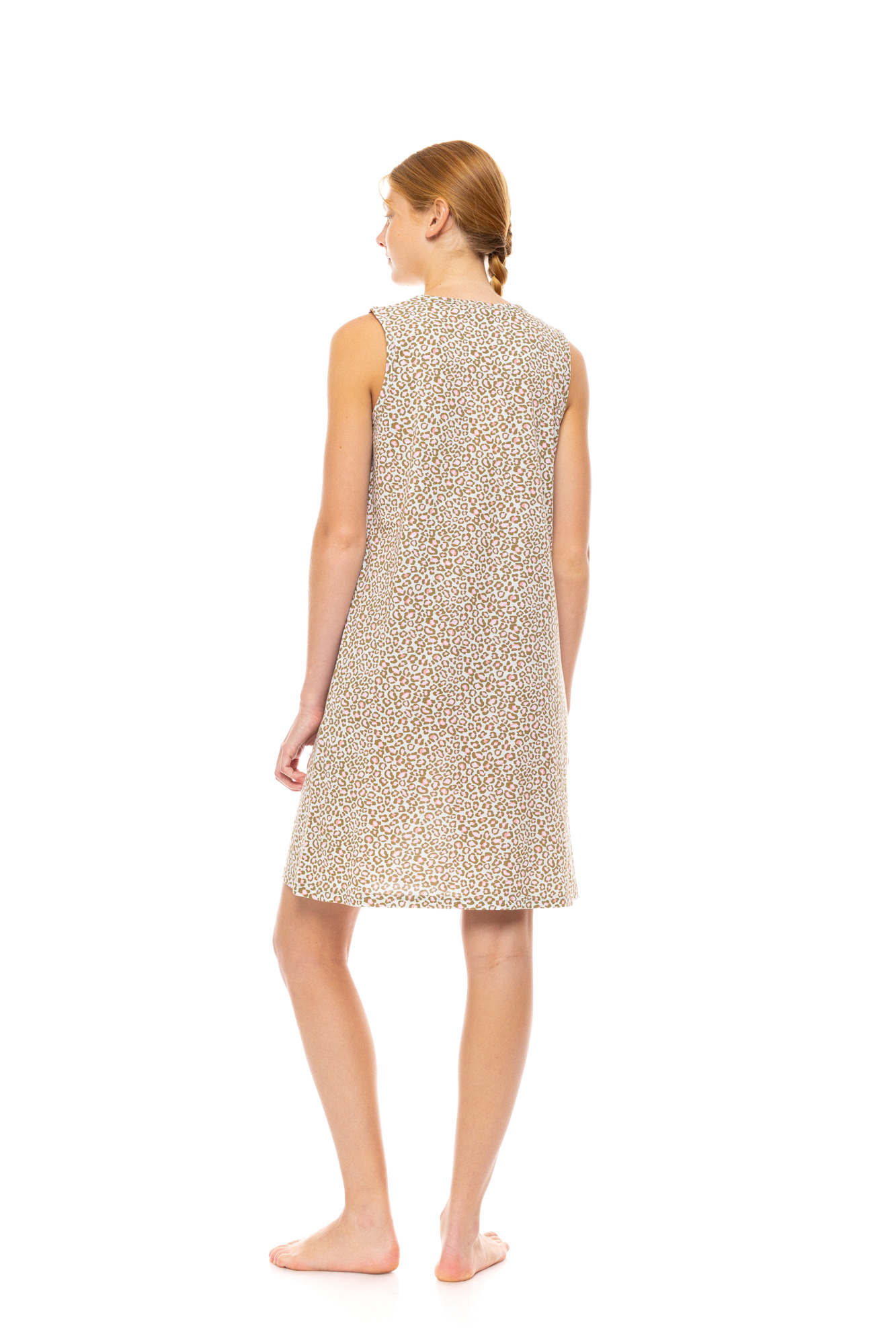 Γυναικείο καλοκαιρινό νυχτικό Pink Label. Κομψό νυχτικό μίνι με λεοπάρ print σε ίσια γραμμή. Διαθέτει φαρδιές τιράντες και V άνοιγμα στο μπούστo και πατιλέτα .