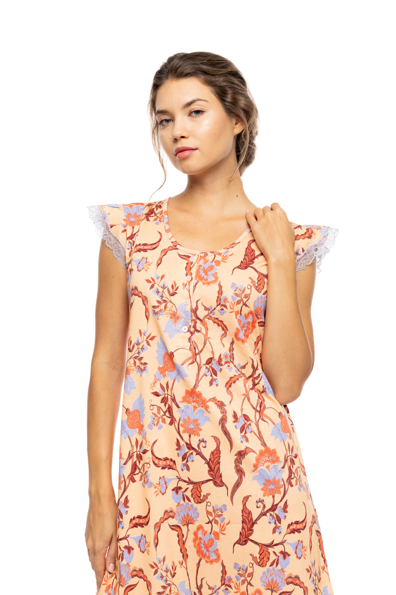 Γυναικείο καλοκαιρινό νυχτικό Pink Label. Κομψό νυχτικό με κοντό μανίκι και πατιλέτα σε floral print . Από δροσερό βαμβακερό ύφασμα που το καθιστά ιδανικό για όλο το καλοκαίρι.