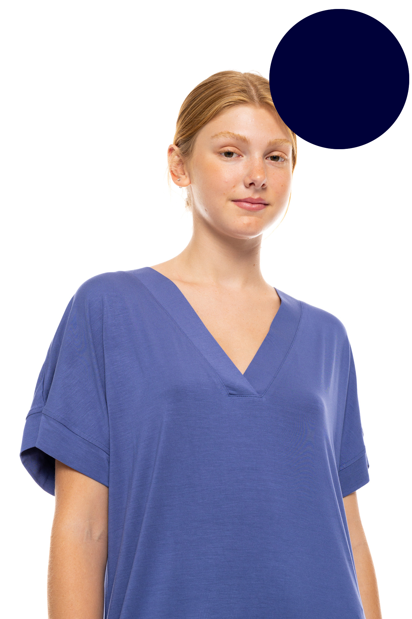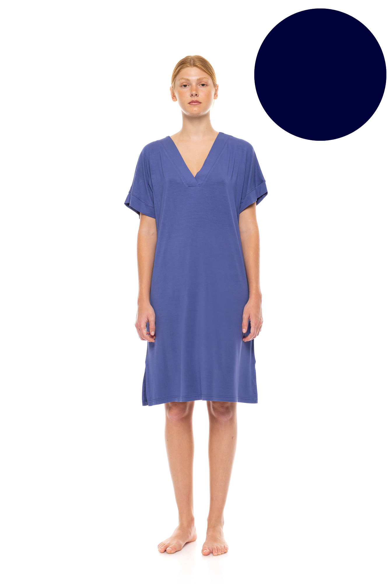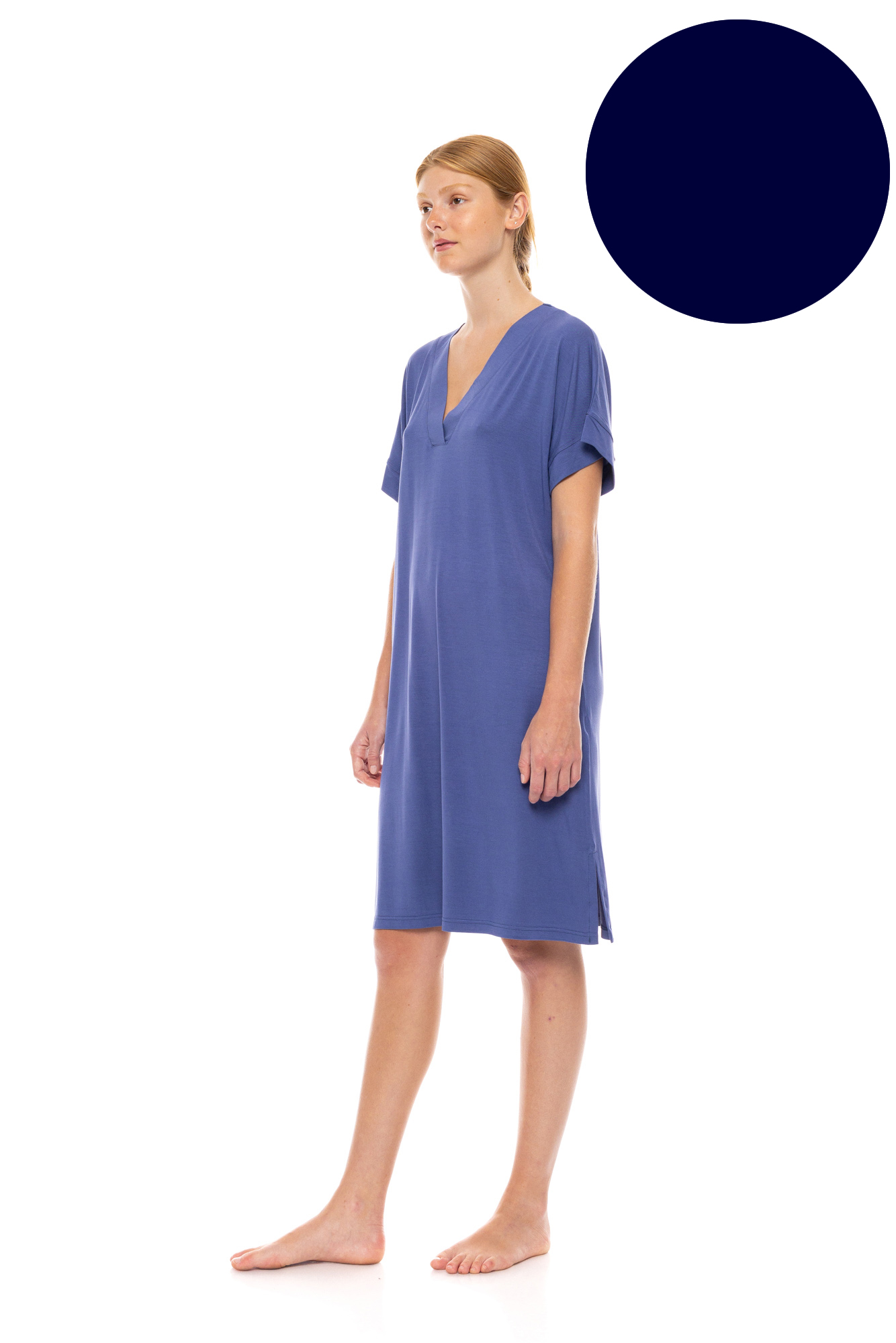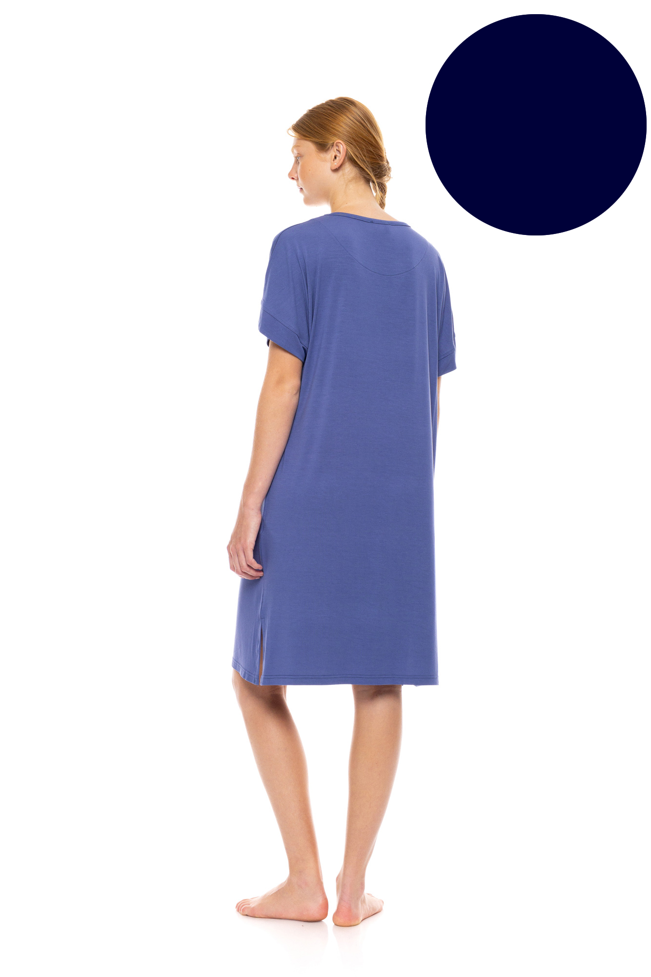 Γυναικείο καλοκαιρινό νυχτικό Pink Label. Κομψό νυχτικό μίνι Yacht Blue σε άνετη γραμμή με V λαιμόκοψη. Το απόλυτο δροσερό και απορροφητικό Bamboo ύφασμα το καθιστά ιδανικό για όλο το καλοκαίρι.