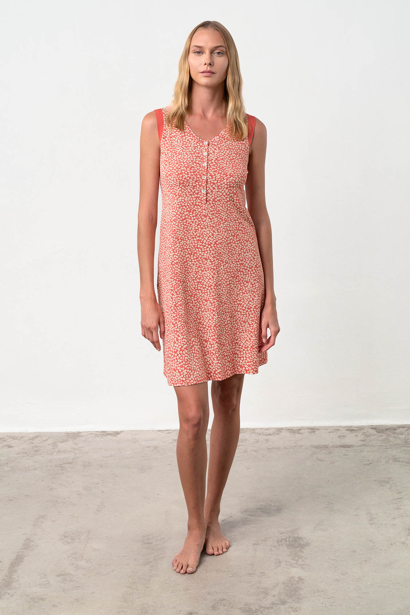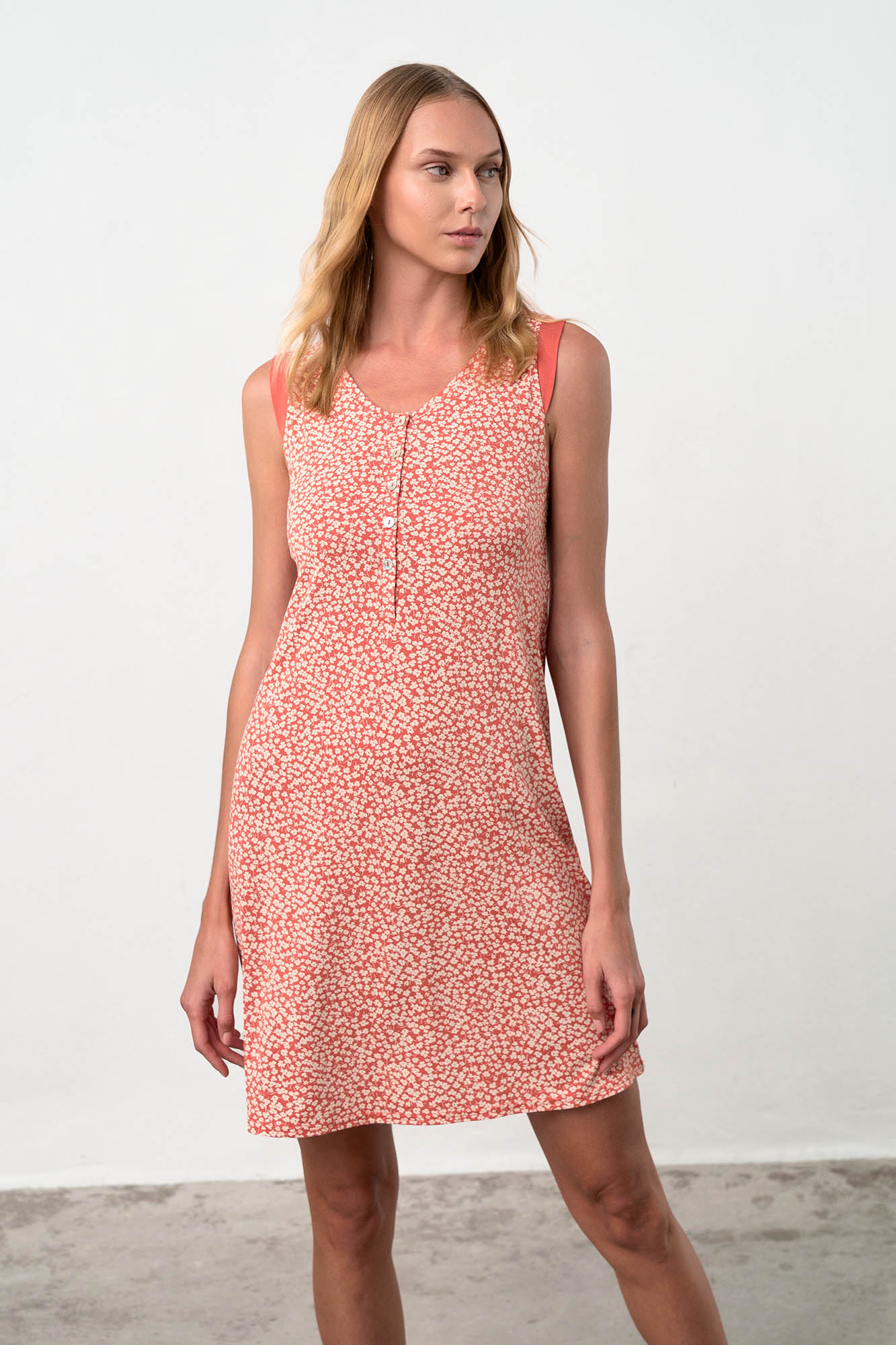 Αμάνικο νυχτικό με πατιλέτα σε χαλαρή γραμμή. Ένα φωτεινό, φλοράλ σχέδιο με καλοκαιρινή διάθεση για κάθε στιγμή της ημέρας.