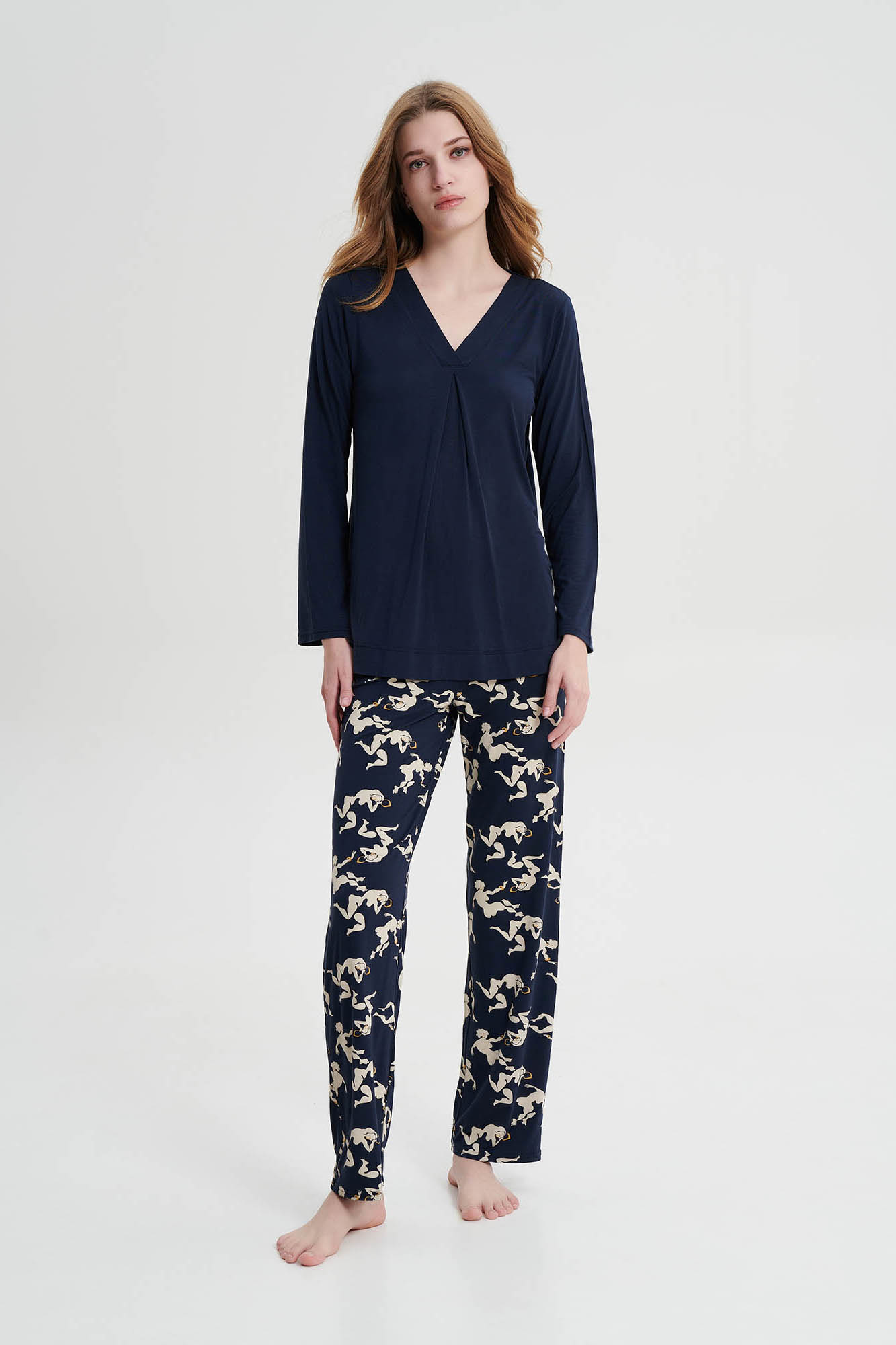 Γυναικεία πυτζάμα με φαρδιά λαιμόκοψη μακρύ μανίκι και πιέτα για μεγαλύτερη άνεση. Μια πρόταση που θα σας δώσει μια μοναδική κομψότητα που σας αξίζει.