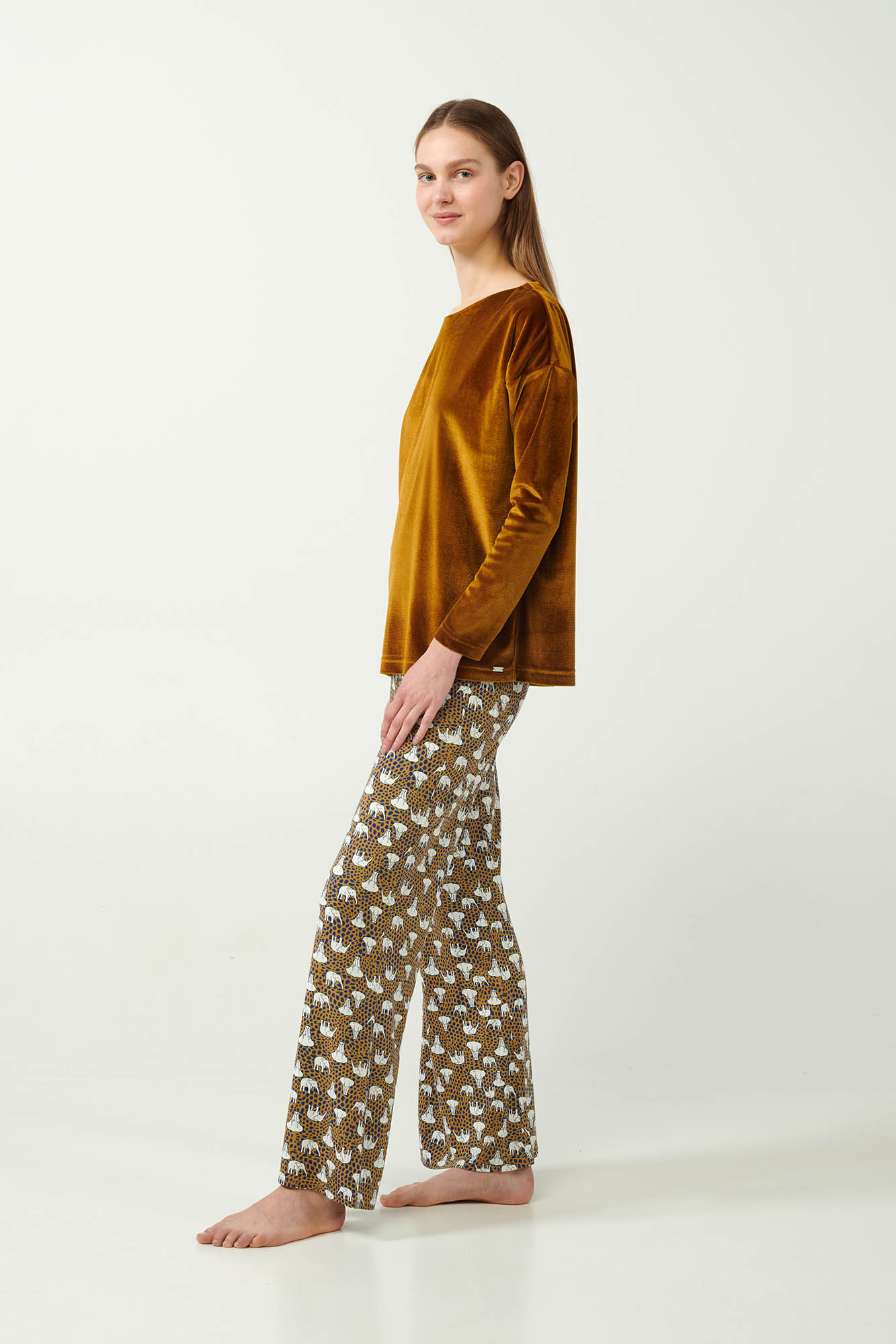 Χαλαρώστε με στυλ επιλέγοντας ένα σετ γυναικείες πυτζάμες , που αποτελείται από ένα παντελόνι καμπάνα με χαριτωμένους ελέφαντες, κατασκευασμένο από εξαιρετικά μαλακό ύφασμα micromodal. Σε συνδυασμό με ένα μονόχρωμο βελούδινο τοπ, αυτό το σετ προσφέρει ένα ιδανικό συνδυασμό άνεσης και κομψότητας. Το παιχνιδιάρικο μοτίβο ελέφαντα στο παντελόνι προσθέτει μια διασκεδαστική πινελιά, ενώ το πολυτελές βελούδινο τοπ προσφέρει ζεστή και κομψή αίσθηση. Είτε χαλαρώνετε στο σπίτι είτε απολαμβάνετε μια χαλαρή μέρα, αυτές οι πυτζάμες θα σας προσφέρουν την άνεση και το στυλ που σας αξίζει.