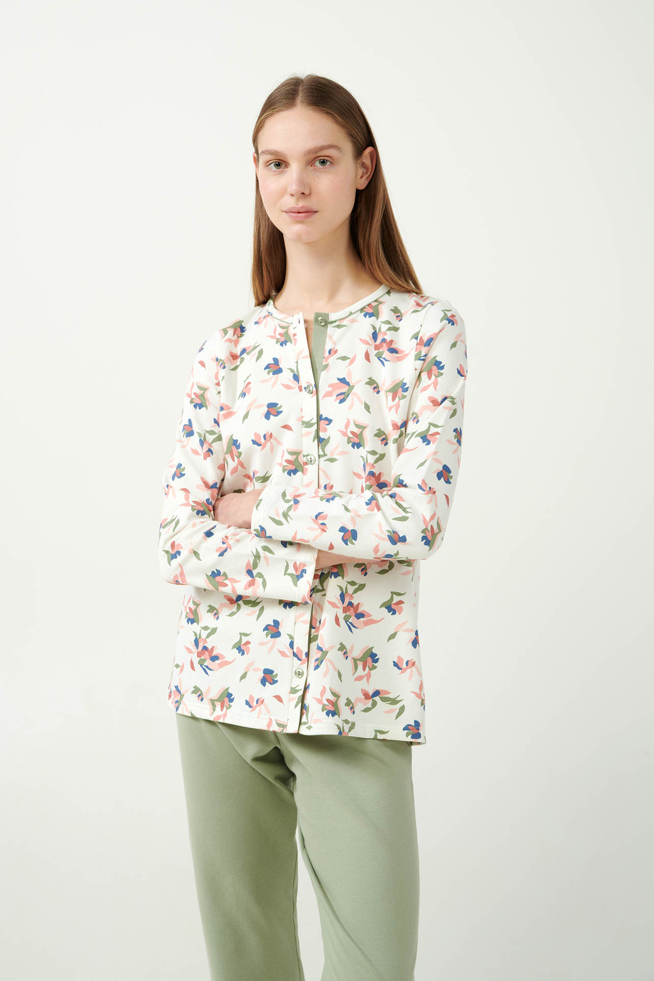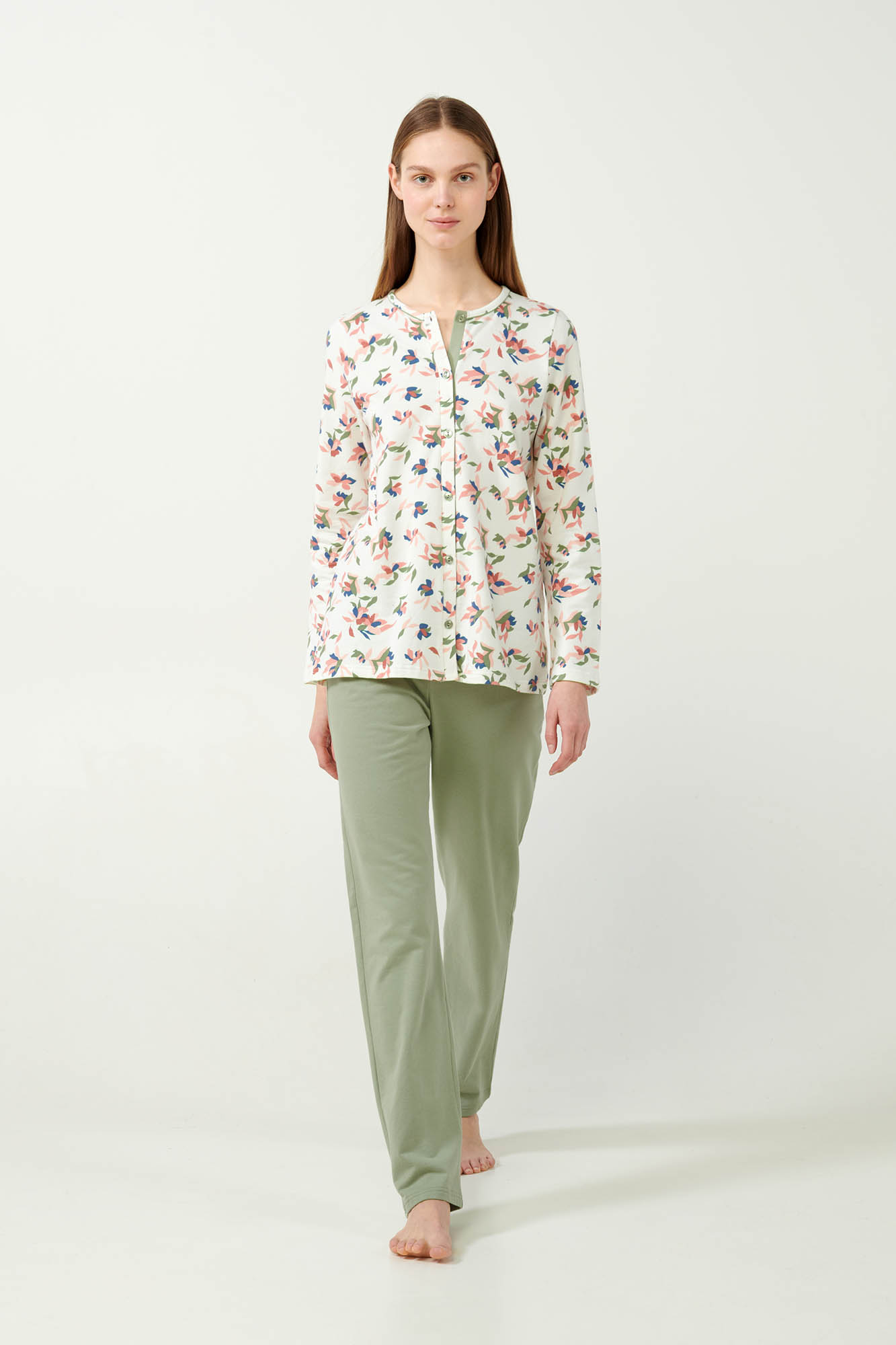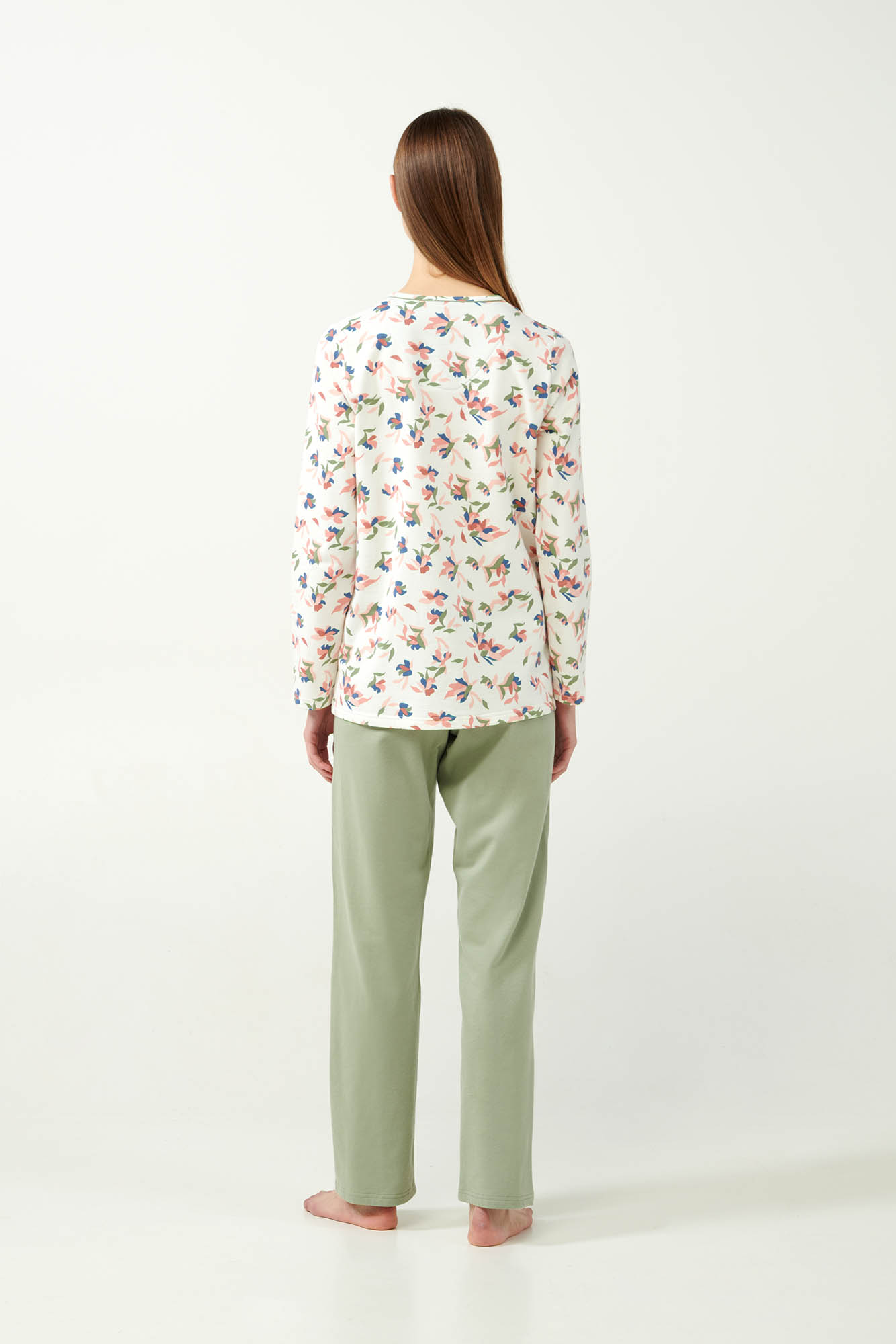 Αγκαλιάστε την άνεση και το στυλ που προσφέρει αυτό το σετ γυναικείες πιτζάμες με γοητευτικό φλοράλ σχέδιο. Σχεδιασμένο σε κανονική γραμμή, το σετ διαθέτει πατιλέτα και είναι κατασκευασμένο από 100% βαμβακερό φούτερ, που εξασφαλίζει απαλή και ζεστή αίσθηση στο σώμα, επιτρέποντας στο δέρμα να αναπνέει. Μια όμορφη πρόταση για τις στιγμές χαλάρωσης ή ένα άνετο και ξεκούραστο ύπνο.
