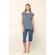 Βυθιστείτε στην άνεση με ένα σετ καλοκαιρινές γυναικείες πυτζάμες σε μπλε αποχρώσεις. Αποτελείται από μονόχρωμο κάπρι παντελόνι που συνοδεύεται από μπλούζα με τύπωμα κοχύλια στο μπροστινό μέρος και κοντό μανίκι. Σχεδιασμένο σε κανονική γραμμή και κατασκευασμένο από απαλό micromodal που επιτρέπει στο σώμα να αναπνέει, προσφέρει ανάλαφρη αίσθηση που θυμίζει θάλασσα και καλοκαιρινές διακοπές.