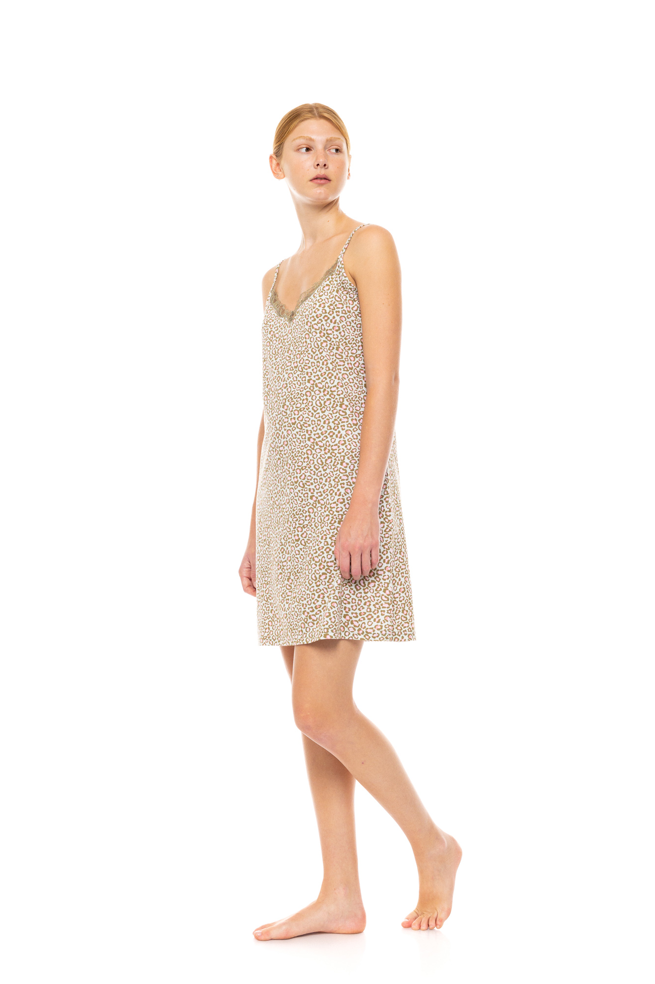 Γυναικείο νυχτικό Pink Label σε ίσια γραμμή λεοπάρ σχέδιο . Καλοκαιρινό νυχτικό με λεπτές τιράντες .