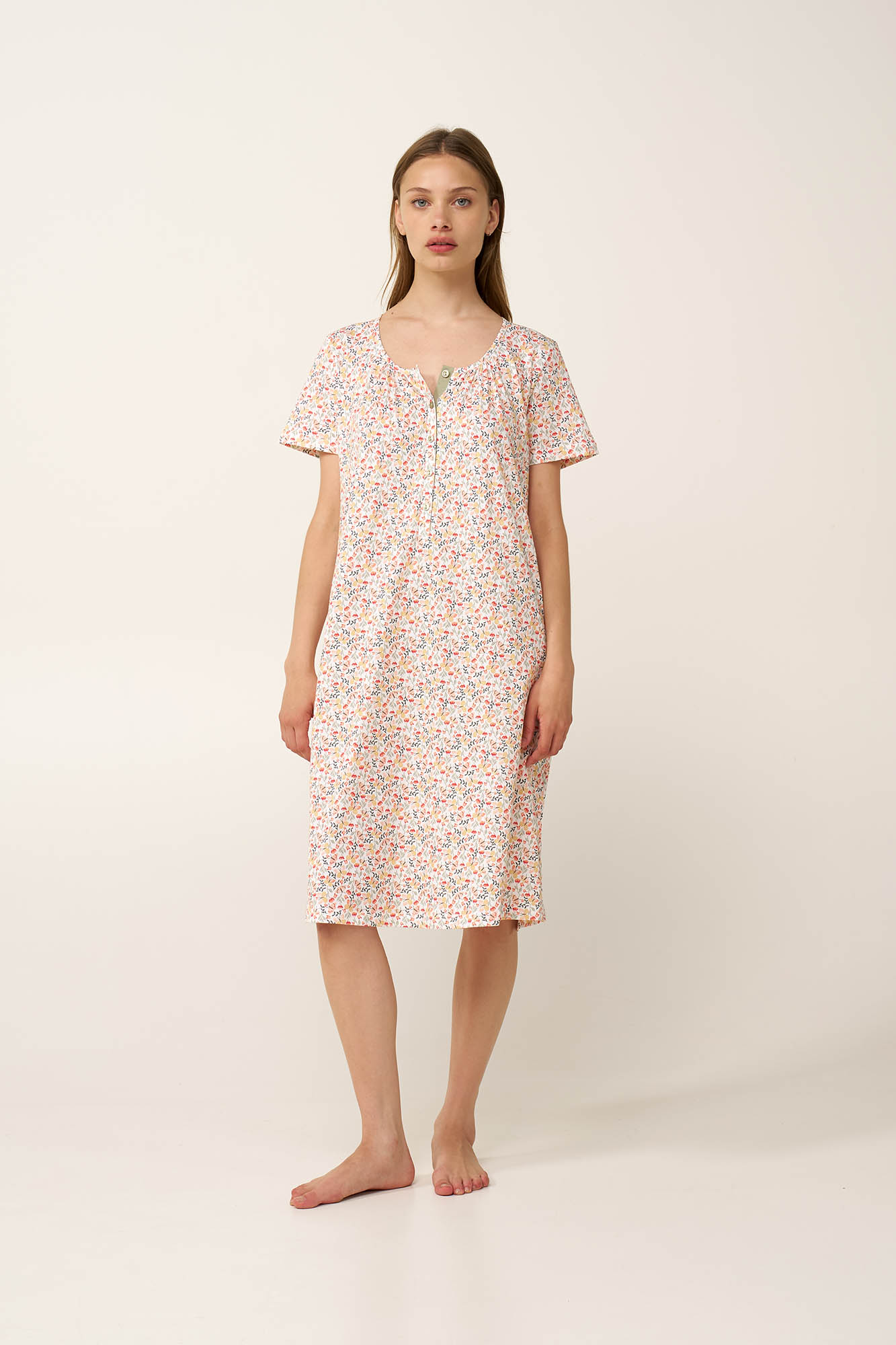 Η άνεση έρχεται φυσικά με αυτό το καλοκαιρινό νυχτικό, κατασκευασμένο από απαλό και διαπνέον 100% βαμβάκι single jersey. Σχεδιασμένο με πρακτική πατιλέτα και κοντά μανίκια, σε χαλαρή γραμμή και ένα δροσερό print με πεταλούδες και αγριολούλουδα χαρίζει φρεσκάδα και μέγιστη άνεση. Μια ιδανική επιλογή για να απολαύσετε ένα όμορφο απόγευμα ή το βραδινό σας ύπνο με άνεση.