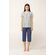 Απολαύστε φυσική καλοκαιρινή άνεση με αυτή τη γυναικεία πυτζάμα, κατασκευασμένη από απαλό και διαπνέον 100% βαμβάκι single jersey. Αποτελείται από τοπ με πατιλέτα σε ένα μοτίβο από φύλλα σε απαλές γήινες αποχρώσεις, που χαρίζει φρεσκάδα και ηρεμία στο σύνολο. Το σετ συμπληρώνει ένα μονόχρωμο κάπρι παντελόνι. Μια πρακτική επιλογή που θα απολαύσετε ένα πρωινό Κυριακής ή το απόγευμα μετά από μια μεγάλη ημέρα.