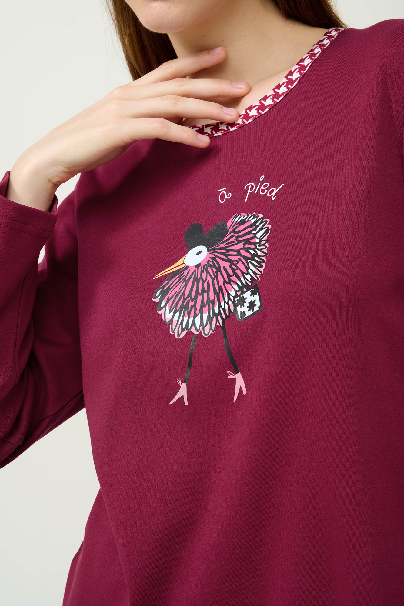 Αφεθείτε στην άνεση που προσφέρει αυτό το σετ γυναικείες πυτζάμες, κατασκευασμένο από υψηλής ποιότητας 100% βαμβάκι interlock. Σχεδιασμένες για τις κρύες ημέρες του χειμώνα, το σετ αποτελείται από μπλούζα με μακριά μανίκια και χαριτωμένο τύπωμα στο στήθος, ενώ το παντελόνι με μοτίβο pied de poule προσθέτει μια κλασική και κομψή πινελιά. Ιδανικό για χαλάρωση στο σπίτι ή έναν απολαυστικό ύπνο, αυτό το σετ προσφέρει ζεστή, απαλή υφή και εξαιρετική διαπνοή στο σώμα.