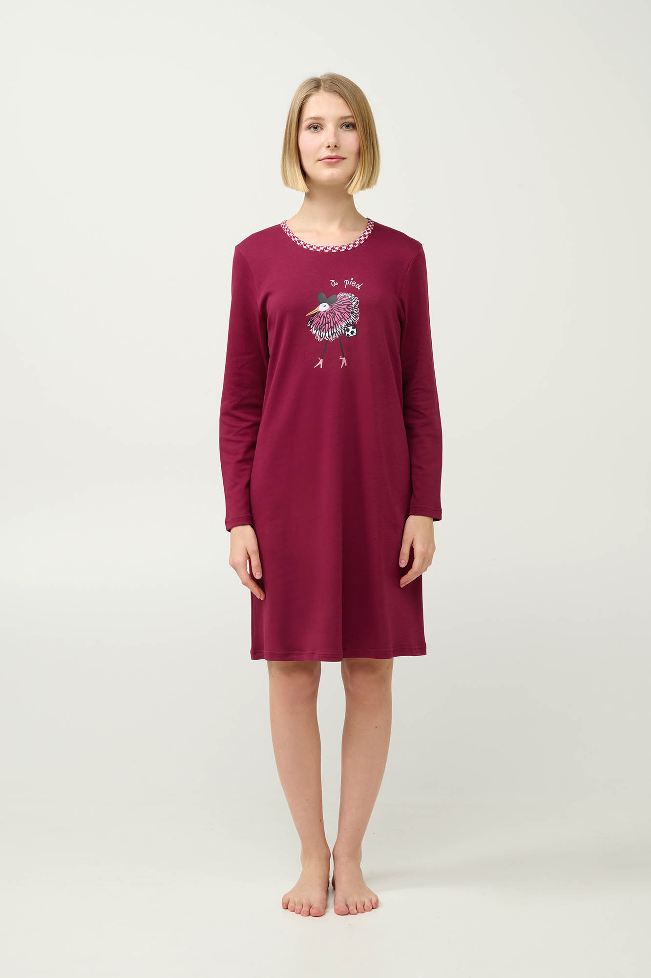 Απολαύστε ζεστές χειμερινές νύχτες με αυτό το νυχτικό, κατασκευασμένο από 100% interlock βαμβάκι υψηλής ποιότητας που χαρίζει απαλή αίσθηση στο σώμα, επιτρέποντας στο δέρμα να αναπνέει. Σχεδιασμένο μακριά μανίκια, προσφέρει και χαριτωμένο τύπωμα στο στήθος που δίνει μια παιχνιδιάρικη νότα στην εμφάνιση σας. Ιδανικό για χαλάρωση στο σπίτι ή έναν απολαυστικό βραδινό ύπνο.