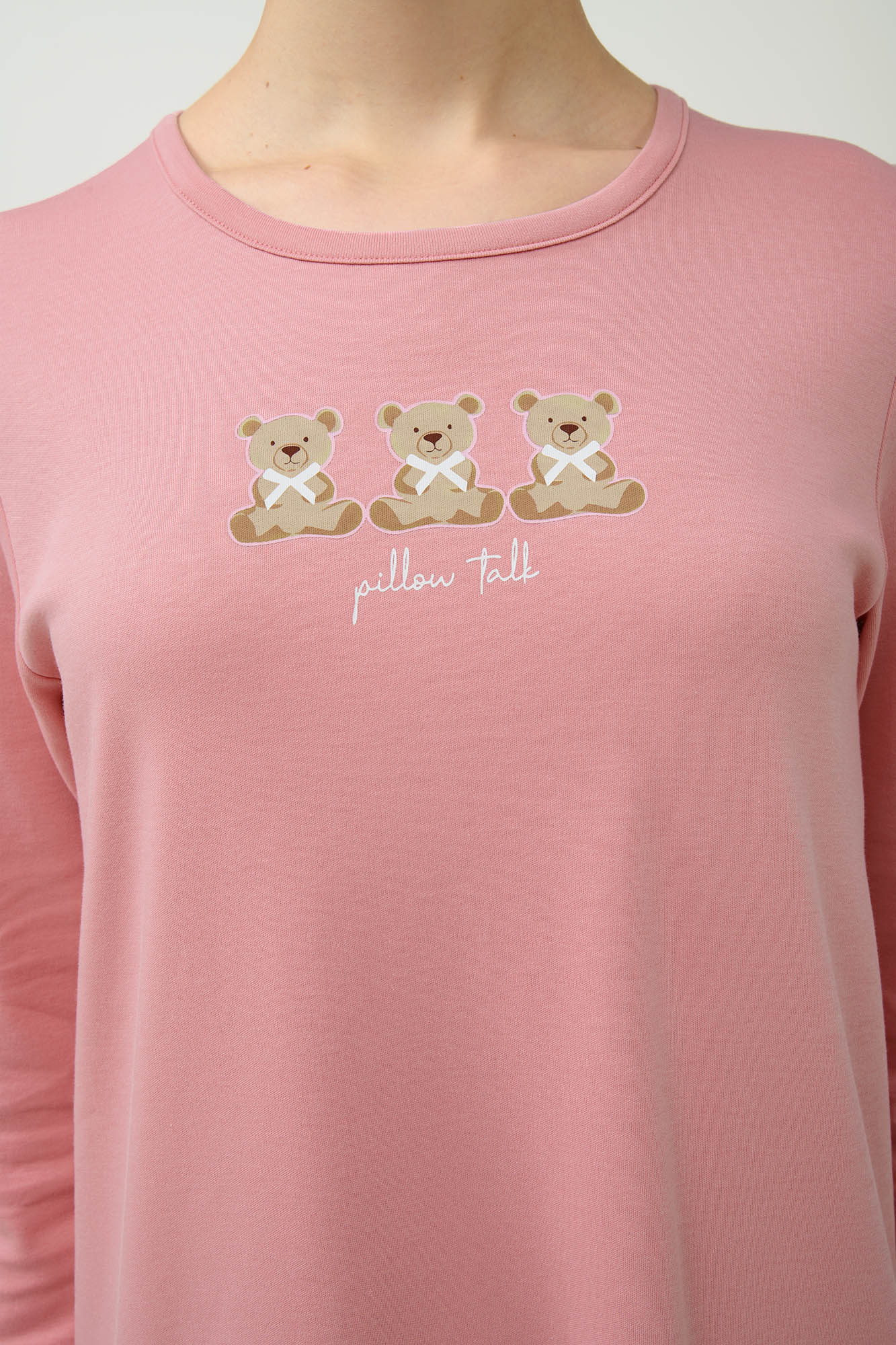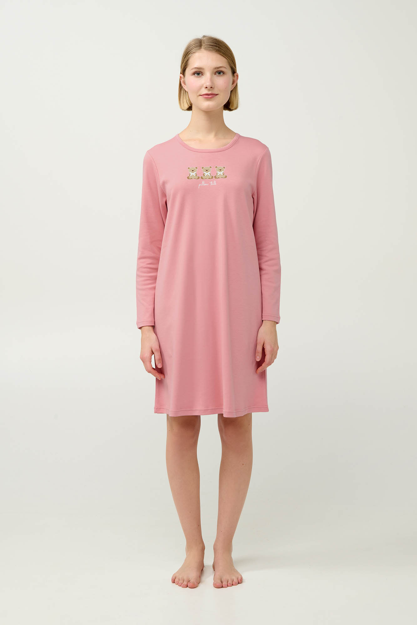 Αποκτήστε ένα χειμερινό νυχτικό, κατασκευασμένο από υψηλής ποιότητας 100% βαμβάκι interlock που προσφέρει απαλή και διαπνέουσα αίσθηση στο σώμα. Σχεδιασμένο σε απαλή ροζ απόχρωση με ένα χαριτωμένο τύπωμα με αρκουδάκια στο στήθος, που προσθέτει μια νεανική νότα στην εμφάνιση σας. Μια ιδανική επιλογή για στιγμές άνεσης και χαλάρωσης στο σπίτι.