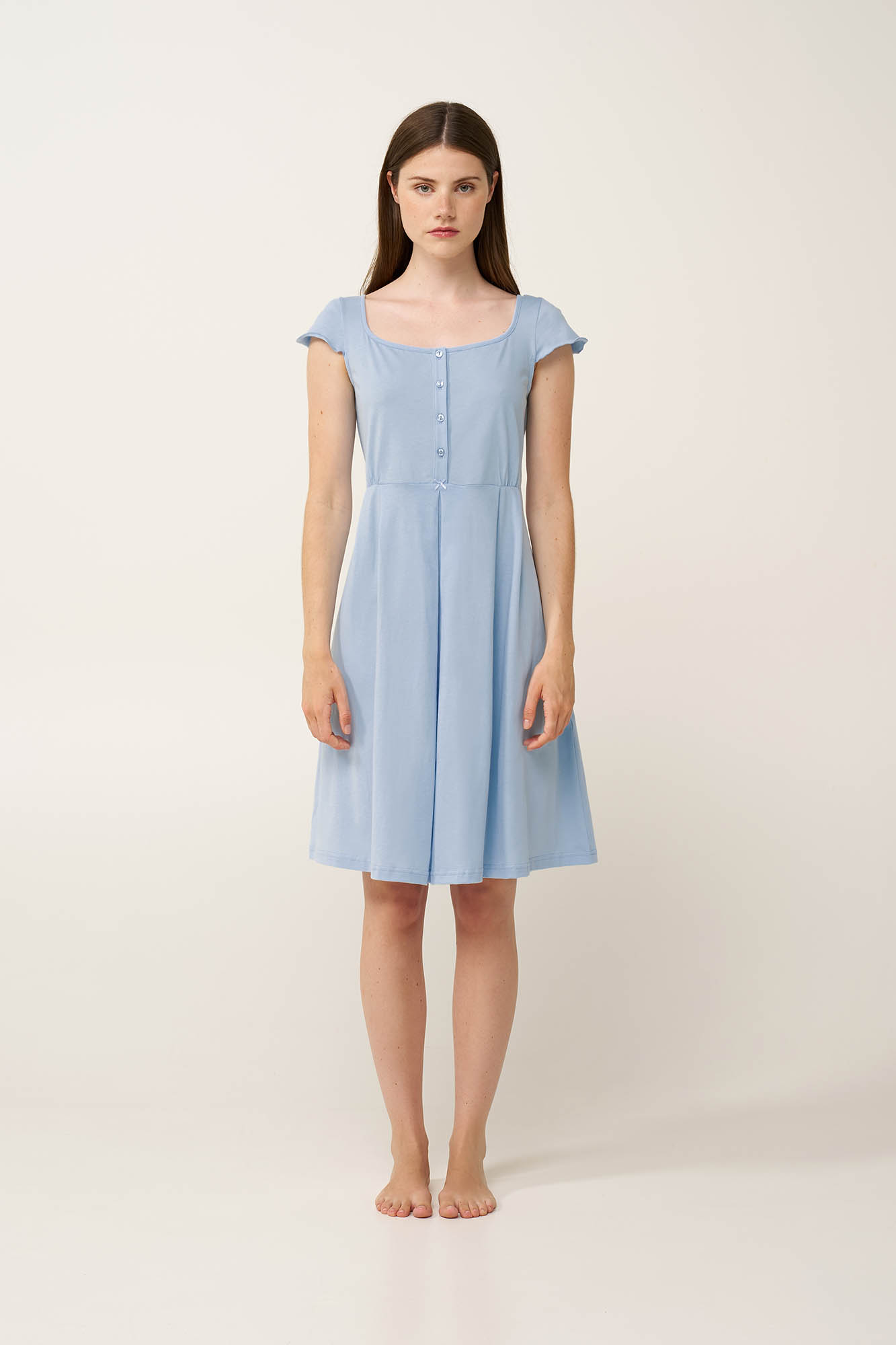 Σχεδιασμένο για να προσφέρει άνεση σε κάθε στάδιο της μητρότητας, αυτό το νυχτικό εγκυμοσύνης και θηλασμού είναι κατασκευασμένο από απαλό και διαπνέον 100% βαμβάκι single jersey. Η κουμπωτή πατιλέτα στο μπροστινό μέρος διευκολύνει τον θηλασμό, ενώ οι απαλές πιέτες κάτω από αυτή προσφέρουν επιπλέον χώρο και πιο χαλαρή εφαρμογή στην κοιλιά. Στην πλάτη, οι διακριτικές σούρες και η κορδέλα εξασφαλίζουν επιπλέον άνεση και προσαρμοσμένη εφαρμογή. Με τρυφερή, θηλυκή αίσθηση, αυτό το νυχτικό είναι ιδανικό για ξεκούραστες νύχτες και ήρεμες στιγμές φροντίδας.