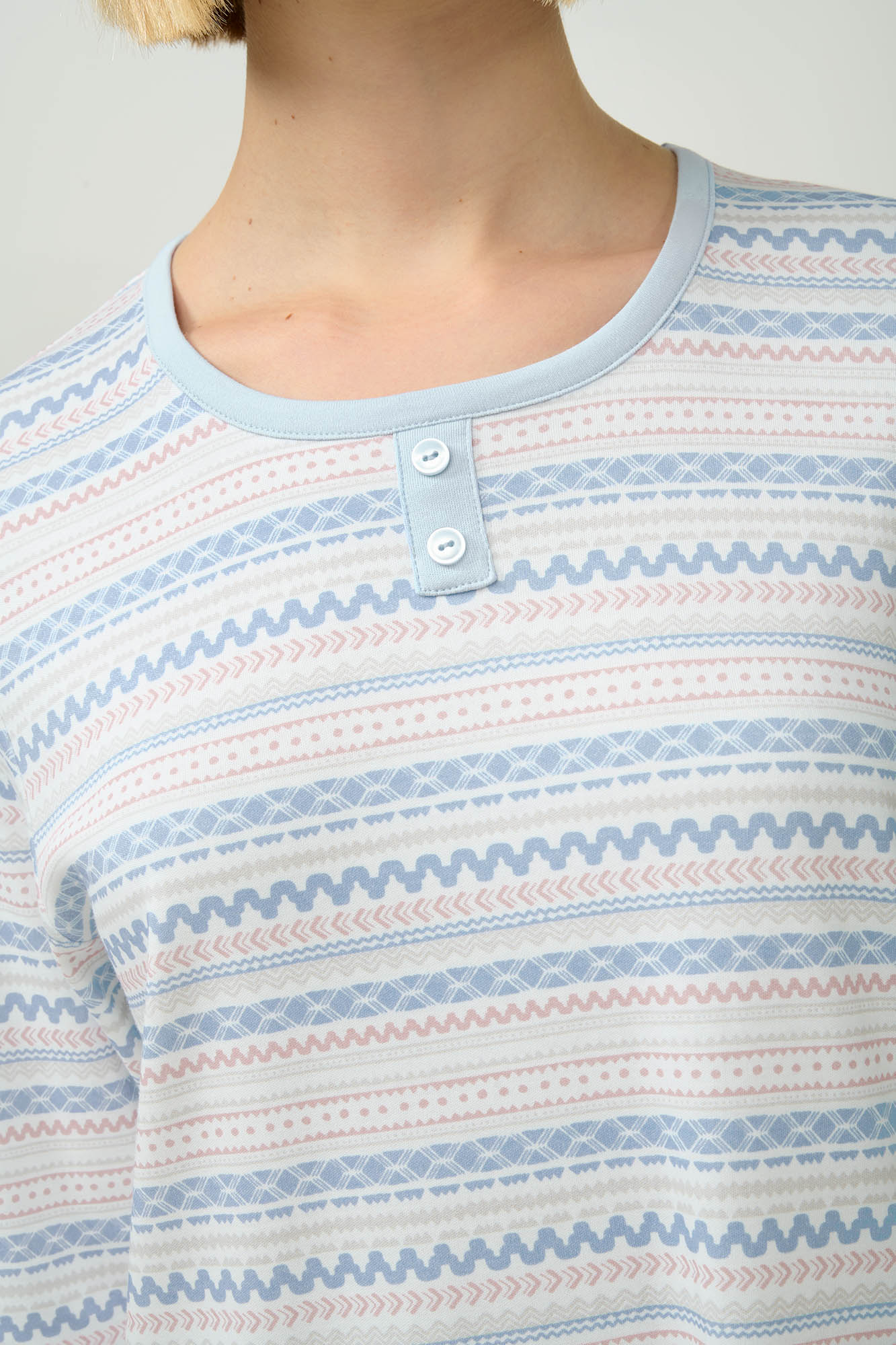 Ανακαλύψτε ένα νυχτικό που συνδυάζει άνεση και διακριτική κομψότητα. Είναι κατασκευασμένο από 100% βαμβάκι Interlock, πλούσιο σε φυσική υφή που προσφέρει ζεστασιά και απαλή αίσθηση. Είναι σχεδιασμένο με μακριά μανίκια και διακριτικό μοτίβο Pillow Talk, προσθέτοντας στυλ στις στιγμές χαλάρωσης σας. Ιδανικό για τις χειμερινές νύχτες στο σπίτι ή τις διακοπές.