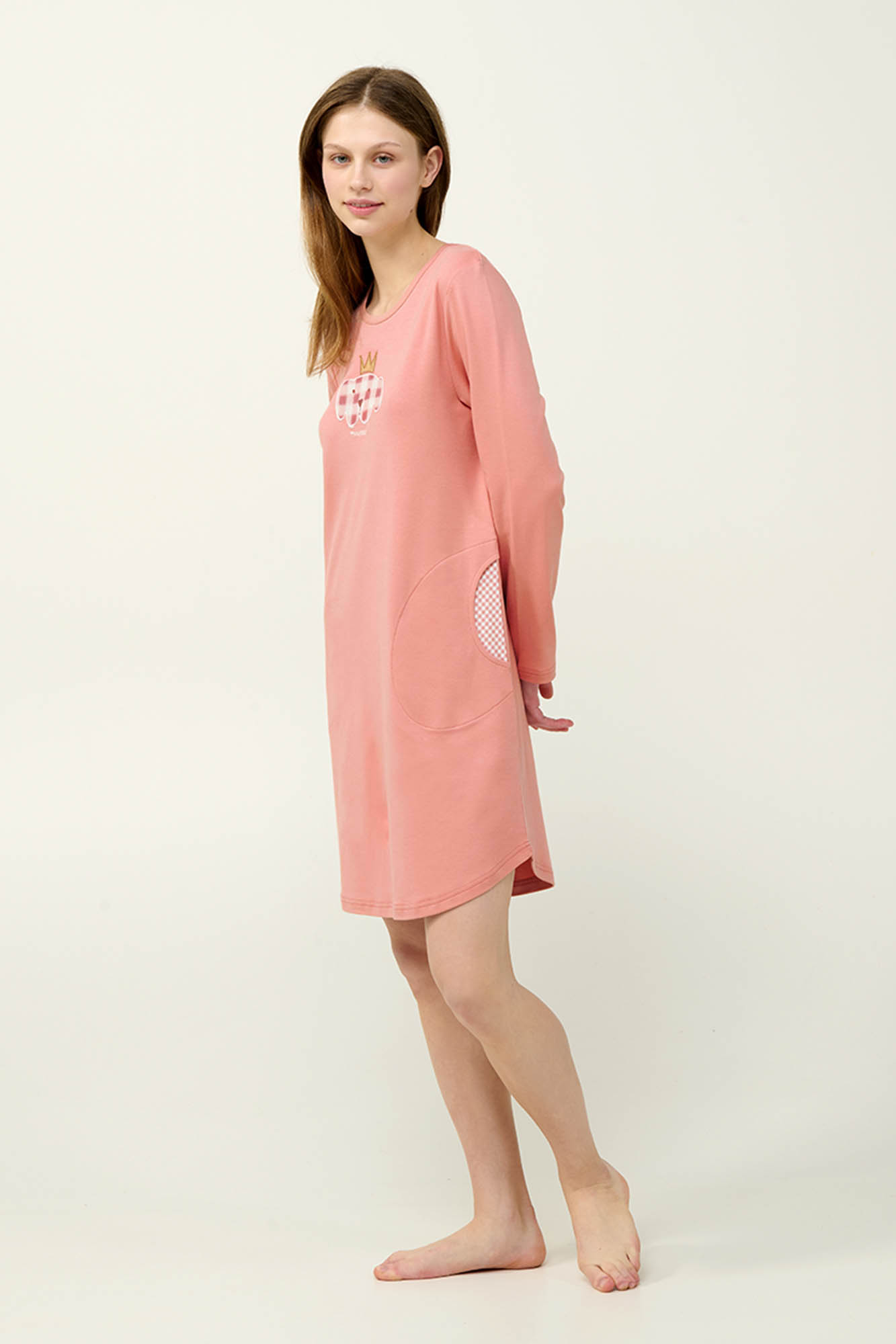 Φορέστε αυτό το απαλό χειμερινό νυχτικό και νιώστε άνεση από την πρώτη στιγμή. Είναι φτιαγμένο από 100% βαμβάκι interlock, που επιτρέπει στο δέρμα να αναπνέει κρατώντας σας ζεστή όλη τη νύχτα. Ο απλός του σχεδιασμός γίνεται πιο παιχνιδιάρικος με το διακριτικό κέντημα στο στήθος και τις πλαϊνές τσέπες με ροζ καρό λεπτομέρειες. Με μακριά μανίκια και διαχρονικό στιλ, είναι το ιδανικό κομμάτι για χαλαρά βράδια και ήρεμα πρωινά στο σπίτι.