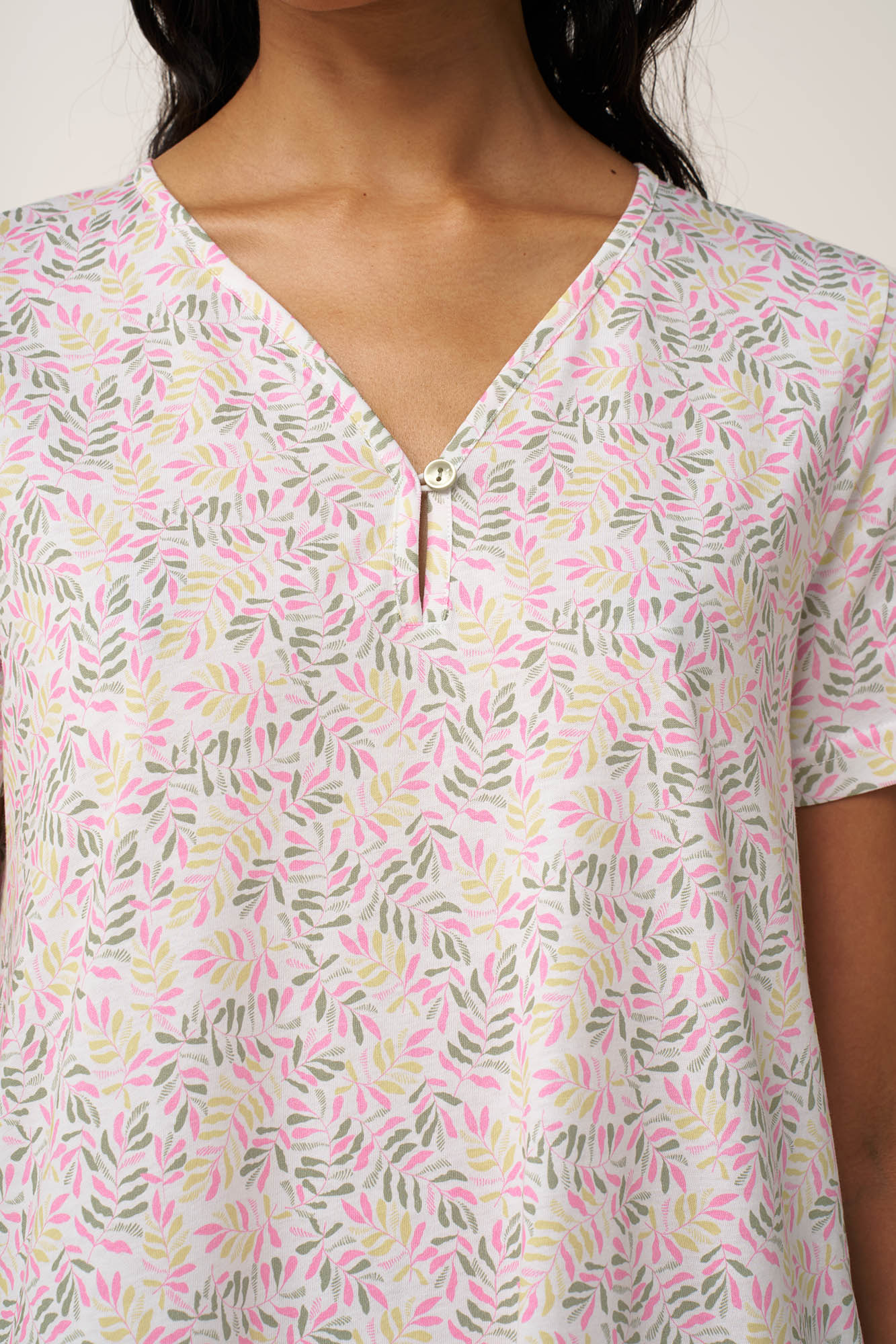 Ανακάλυψε τη διαχρονική καλοκαιρινή άνεση που προσφέρει αυτό το κλασικό νυχτικό, κατασκευασμένο από απαλό και διαπνέον 100% βαμβάκι single jersey. Η λαιμόκοψη σε σχήμα V προσθέτει διακριτική κομψότητα, ενώ το ελαφρύ ύφασμα εξασφαλίζει φυσικά άνετη εφαρμογή. Σχεδιασμένο σε ένα διαχρονικό botanical print μοτίβο δίνει δροσερή αίσθηση και φρεσκάδα τις ζεστές καλοκαιρινές ημέρες. Ένα νυχτικό που θα απολαύσετε μετά από μια μεγάλη ημέρα στη δουλειά ή στις διακοπές.