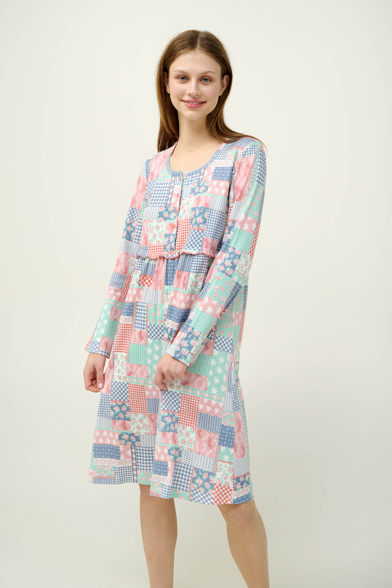 Εμπριμέ νυχτικό με μακρύ μανίκι και πατιλέτα. Φτιαγμένο από βαμβάκι σε χαλαρή γραμμή, θα σας δώσει την άνεση που αναζητάτε στο σπίτι.
