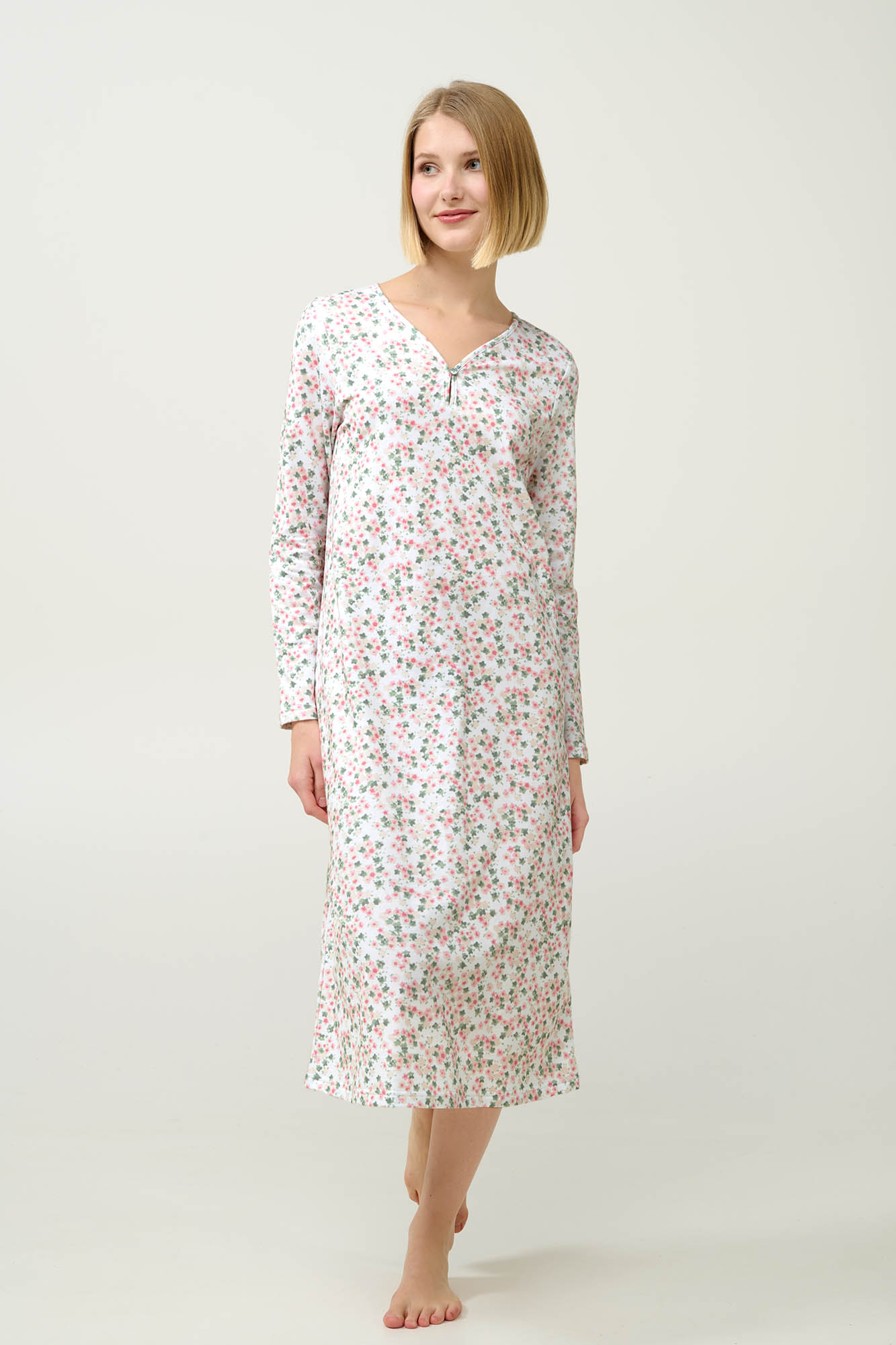 Προσθέστε στη συλλογή σας ένα χειμερινό νυχτικό, κατασκευασμένο από 100% βαμβάκι φούτερ. Διαθέτει ρομαντικό φλοράλ μοτίβο και μακριά μανίκια, προσφέροντας διαχρονική κομψότητα, ενώ το διαπνέον ύφασμα χαρίζει φυσικά ζεστή αίσθηση και διαρκή απαλότητα. Σχεδιασμένο για χαλαρές βραδιές, αυτό το κλασικό νυχτικό συνδυάζει άνεση και στυλ.