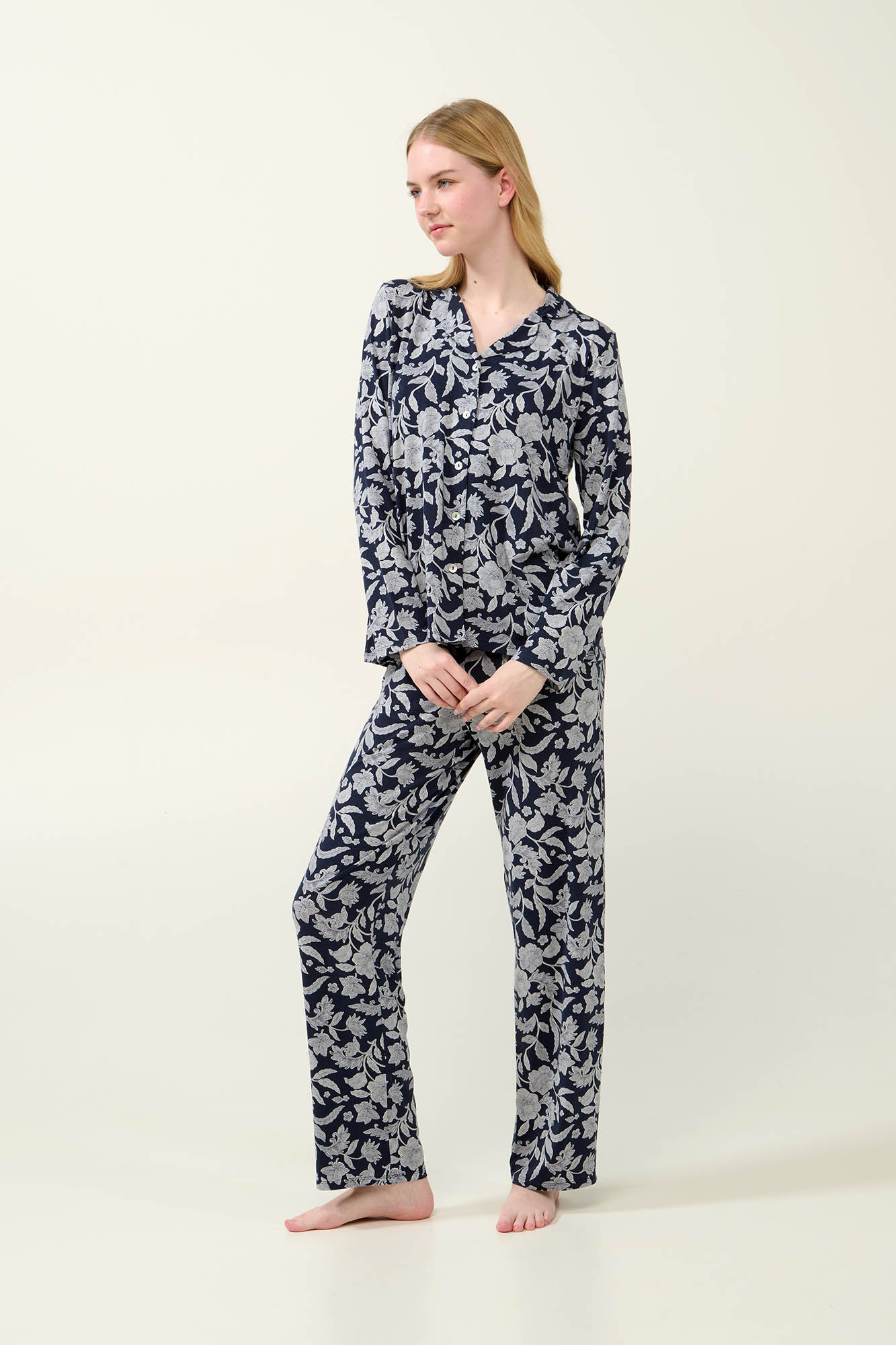 Επιλέξτε ένα σετ γυναικείες πυτζάμες που συνδυάζει άνεση και κομψότητα. Είναι κατασκευασμένο από εξαιρετικά απαλό LENZING Tencel Modal Micro,που αγκαλιάζει το σώμα και επιτρέπει στο δέρμα να αναπνέει. Είναι σχεδιασμένο με κλασικό κουμπωτό μπροστινό μέρος και μακριά μανίκια, ενώ το λευκό φλοράλ μοτίβο προσθέτει ρομαντική διάθεση στις στιγμές χαλάρωσης σας. Μια πυτζάμα με διαχρονική κομψότητα που θα απολαύσετε για χρόνια.