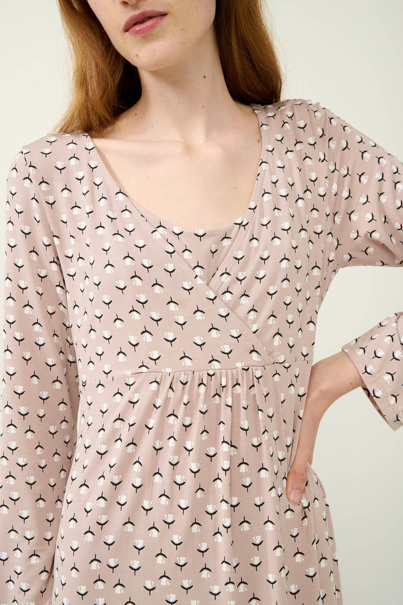 Αφεθείτε στην άνεση που σας προσφέρει αυτό το χειμερινό νυχτικό εγκυμοσύνης και θηλασμού, κατασκευασμένο από εξαιρετικά απαλό LENZING Tencel Modal Micro με φλοράλ μοτίβο. Είναι σχεδιασμένο με σταυρωτή λαιμόκοψη για εύκολη πρόσβαση στο στήθος και σούρες που προσφέρουν επιπλέον άνεση και χώρο στην περιοχή της κοιλιάς. Μια επιλογή που συνδυάζει κομψότητα, άνεση και πρακτικότητα, για νέες και μέλλουσες μητέρες.