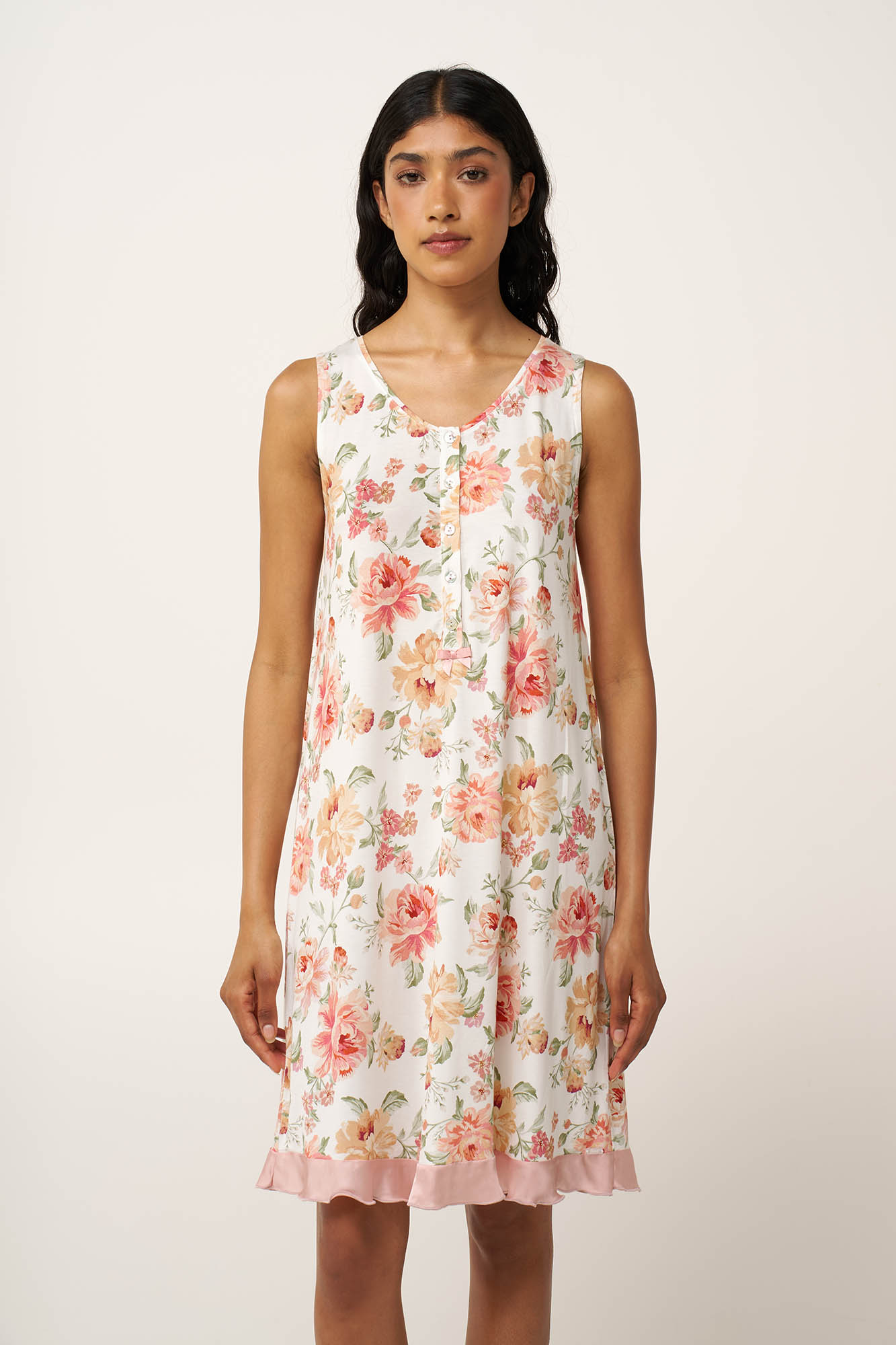 Ανακαλύψτε την απόλυτη άνεση με αυτό το απαλό και διαπνέον νυχτικό, κατασκευασμένο από LENZING Tencel Modal Micro και elastane. Σχεδιασμένο με πατιλέτα στο πάνω μέρος που χαρίζει κλασικό χαρακτήρα και εξυπηρετεί στο θηλασμό. Είναι διακοσμημένο με ένα εντυπωσιακό vintage φλοράλ μοτίβο, που αποπνέει διαχρονική κομψότητα και θηλυκότητα. Ιδανικό για ζεστές καλοκαιρινές νύχτες, συνδυάζει πρακτικότητα και στυλ, για να αισθάνεστε όμορφα και άνετα στις στιγμές χαλάρωσης σας.
