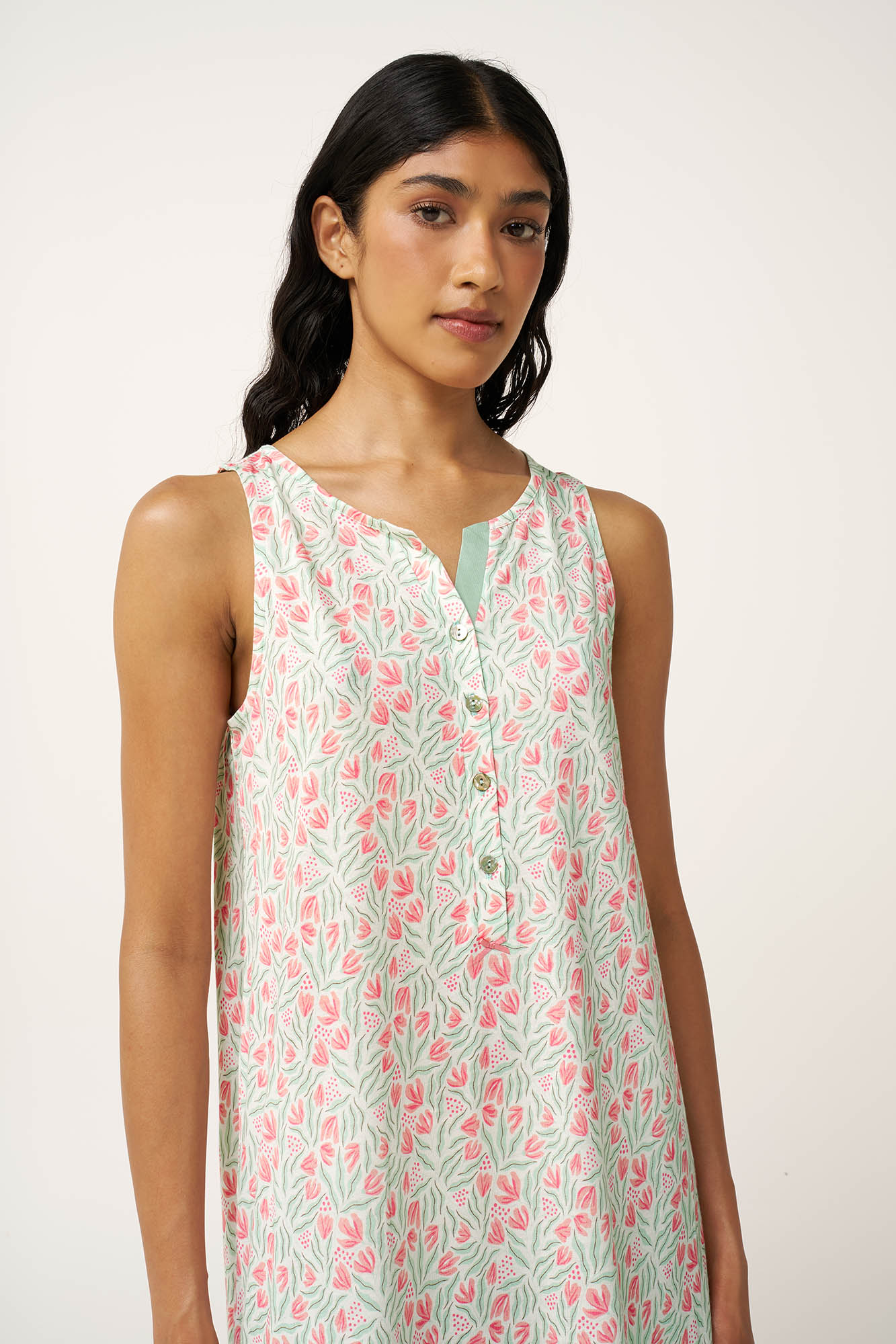 Απαλό, άνετο και ιδανικό για ζεστά καλοκαιρινά βράδια, αυτό το νυχτικό από cotton-modal χαρίζει φρεσκάδα και φυσική κομψότητα στο nightwear σας. Το διαπνέον ύφασμα είναι δροσερό στο δέρμα και προσφέρει άνεση που διαρκεί όλη τη νύχτα. Σχεδιασμένο με πρακτική πατιλέτα που μπορεί να εξυπηρετήσει τον θηλασμό, ενώ η χαλαρή γραμμή εξασφαλίζει άνετη εφαρμογή σε όλο το σώμα. Με μανίκια που καλύπτουν απαλά τους ώμους και διακριτικό φλοράλ μοτίβο εμπνευσμένο από ανθισμένους κήπους, συνδυάζει ιδανικά καθημερινή και θηλυκή γοητεία.