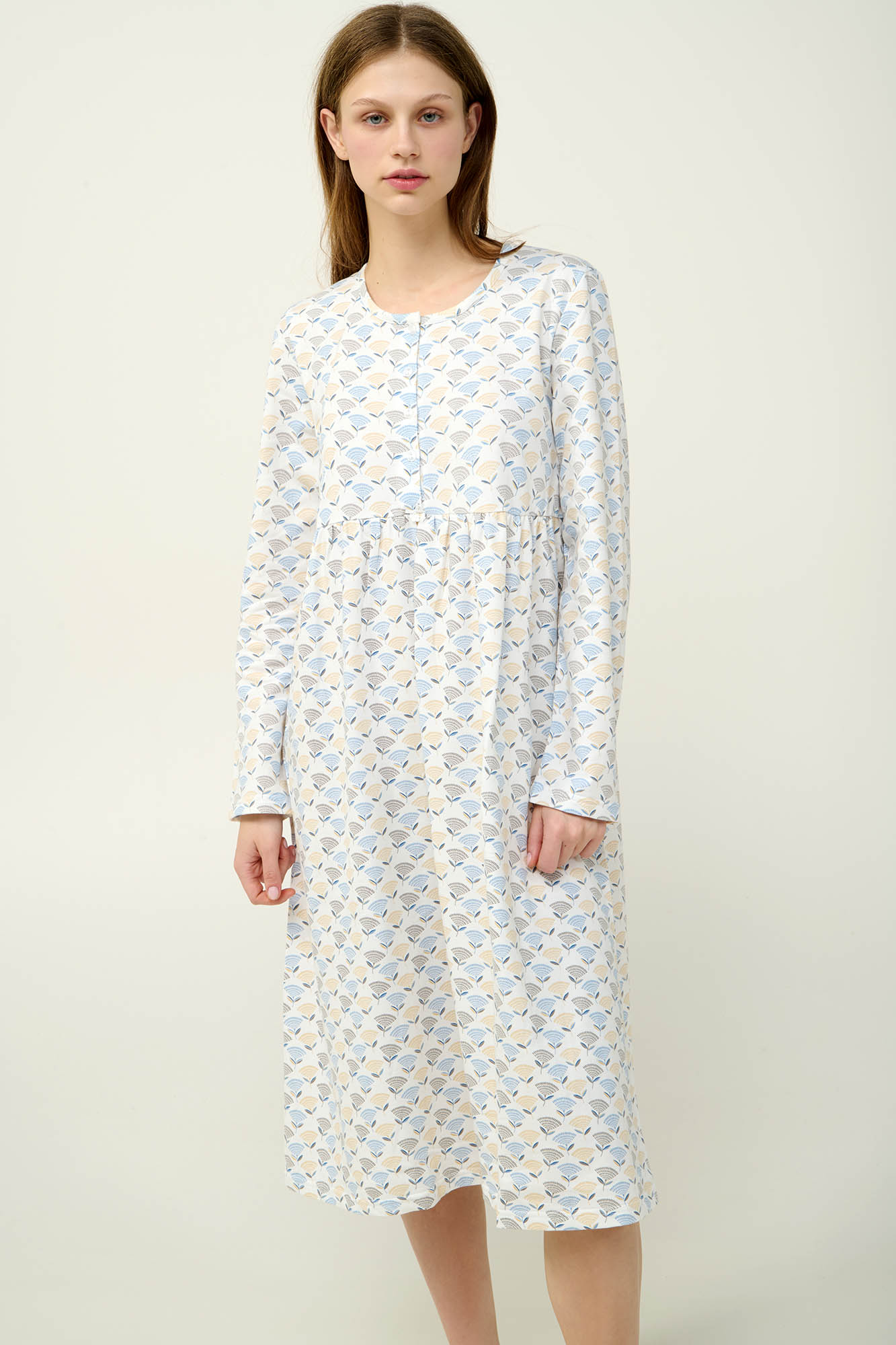 Φλοράλ νυχτικό με μακρύ μανίκι και πατιλέτα. Φτιαγμένο από ζεστό βαμβάκι σε χαλαρή γραμμή, θα σας δώσει την άνεση που αναζητάτε στο σπίτι.