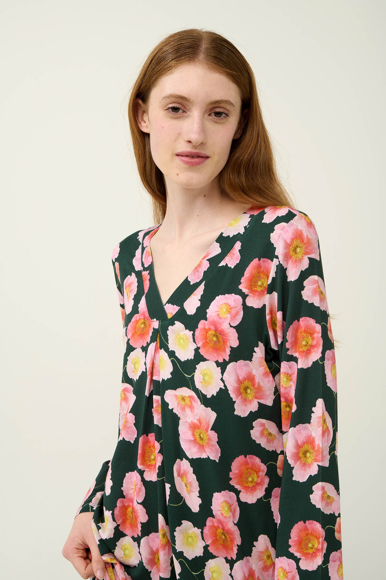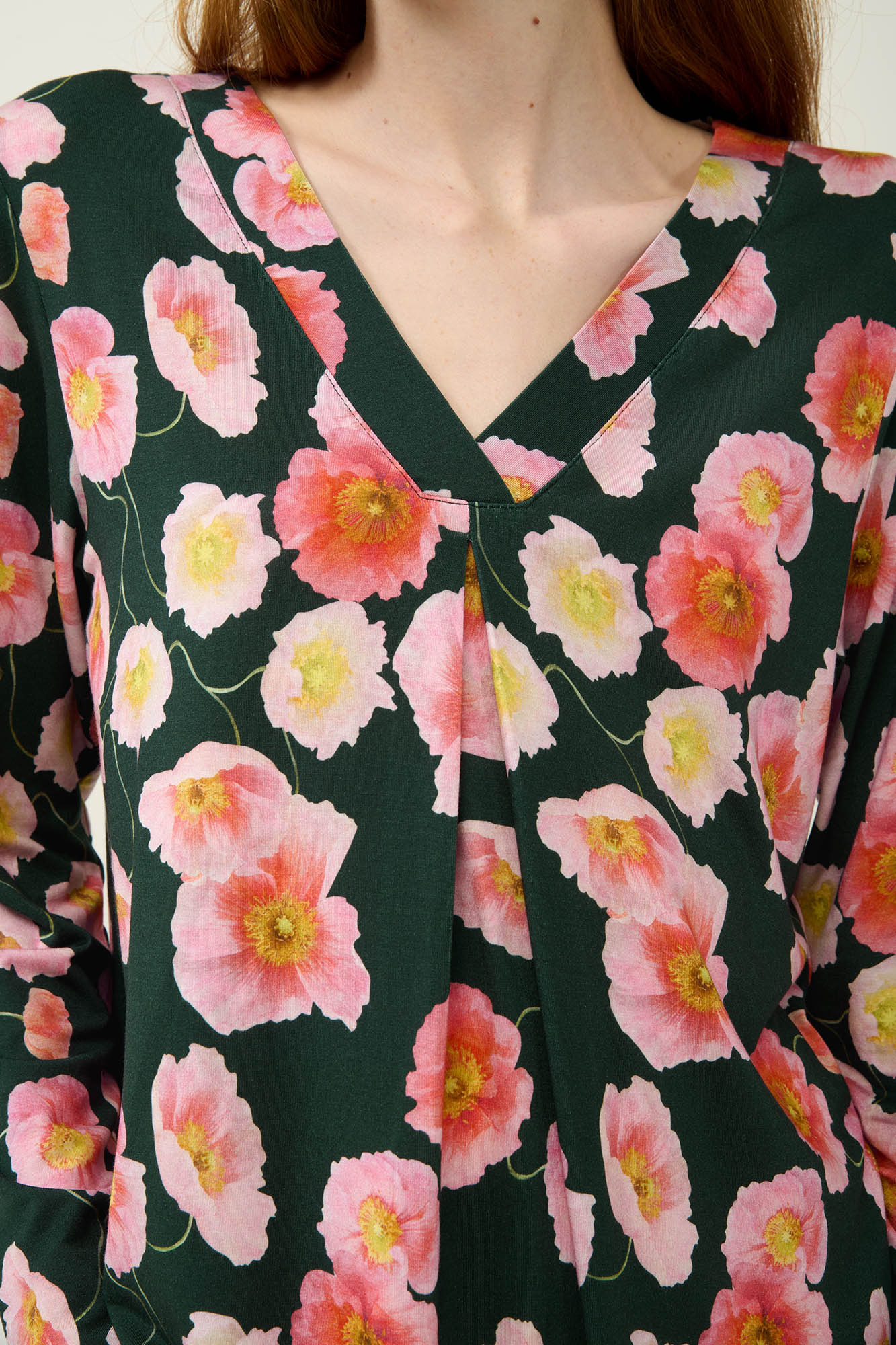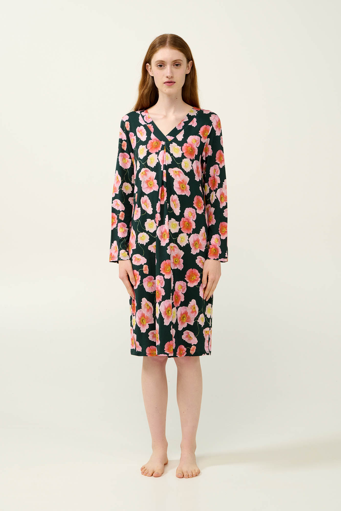 Προσθέστε στη γκαρνταρόμπα σας ένα φλοράλ νυχτικό που συνδυάζει κομψότητα και άνεση. Είναι κατασκευασμένο από LENZING Tencel Modal Micro με μοναδικά απαλή υφή που αγκαλιάζει ευχάριστα το σώμα. Είναι σχεδιασμένο με μακρυμάνικα μανίκια, λαιμόκοψη V και πιέτα στο στήθος που χαρίζει άνεση και μεγαλύτερη ελευθερία κινήσεων. Ιδανικό για να απολαύσετε το βραδινό σας ύπνο ή ένα χαλαρό απόγευμα στο σπίτι.