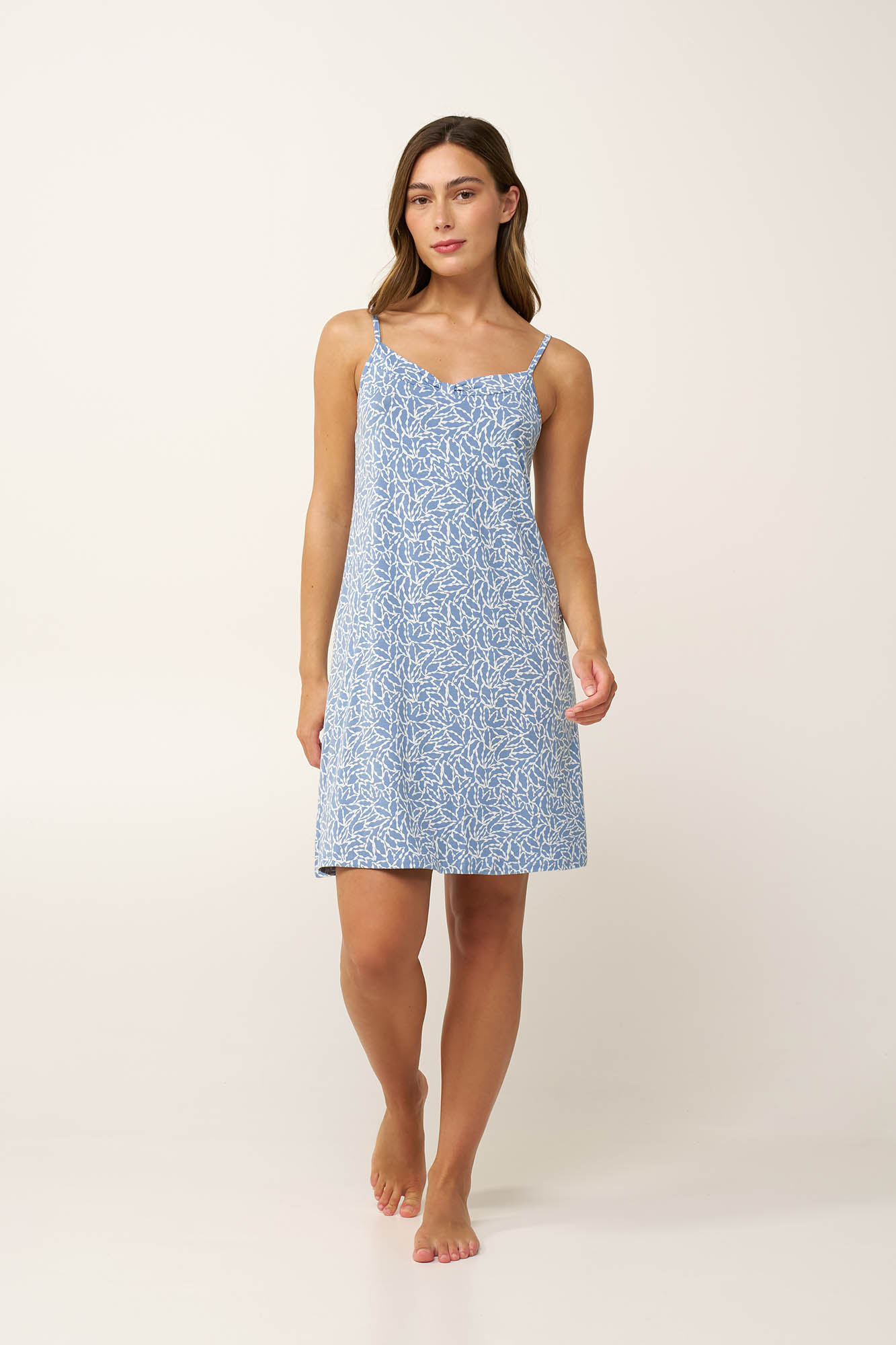Αφεθείτε στις καλοκαιρινές νύχτες με αυτό το κομψό νυχτικό με λεπτές τιράντες, φτιαγμένο από LENZING Tencel Modal Micro με elastane. Το απαλό και δροσερό ύφασμα αγκαλιάζει ευχάριστα το σώμα, χαρίζοντας αίσθηση ελευθερίας και θηλυκότητα ενώ το φλοράλ μοτίβο προσθέτει φρεσκάδα και αέρινη κομψότητα. Ιδανικό για στιγμές χαλάρωσης στο σπίτι ή για έναν ήρεμο, ξεκούραστο ύπνο.