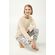 Επιλέξτε αυτό το γυναικείο σετ πυτζάμες, κατασκευασμένο από 100% βαμβάκι interlock, γνωστό για την απαλή υφή και την εξαιρετική διαπνοή του. Το μονόχρωμο μπεζ τοπ συνδυάζεται αρμονικά με παντελόνι με μανσέτες και κομψό μοτίβο από φιόγκους, προσφέροντας μια κομψή και θηλυκή εμφάνιση. Με μακριά μανίκια και χαλαρή γραμμή, το σετ εξασφαλίζει άνεση και ελευθερία κινήσεων για να απολαύσετε στιγμές χαλάρωσης ή έναν ευχάριστο ύπνο.