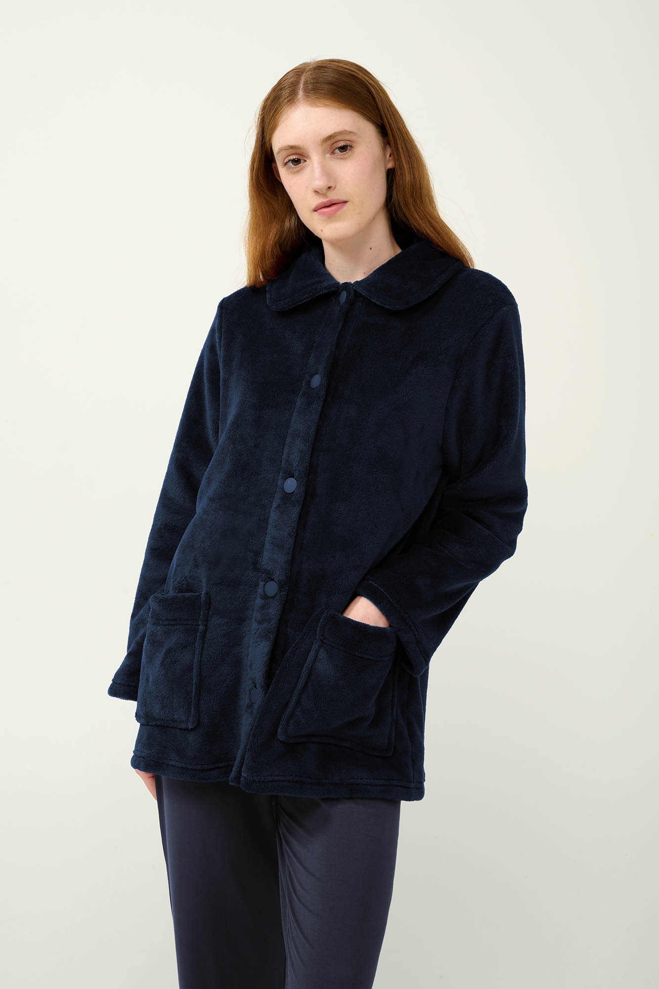 Μείνετε ζεστές ακόμη και τους πιο κρύους μήνες με αυτή την κλασική fleece ρόμπα, σχεδιασμένη για να φορεθεί πάνω από τις αγαπημένες σας πυτζάμες. Φτιαγμένη από απαλό και ζεστό fleece, διαθέτει κλασικό κουμπωτό μπροστινό μέρος και πρακτικές τσέπες για να έχετε επάνω σας απαραίτητα προσωπικά αντικείμενα. Μια ιδανική επιλογή για να απολαύσετε με άνεση ένα ήρεμο απόγευμα στο καναπέ ή ένα χαλαρό πρωινό.