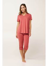 Επιλέξτε ένα σετ καλοκαιρινές γυναικείες πυτζάμες από απαλό LENZING Tencel Modal Micro, που προσφέρει ανάλαφρη, διαπνέουσα αίσθηση στο σώμα. Αποτελείται από τοπ με σούρες στο στήθος, ρομαντικές σιφόν λεπτομέρειες στα μανίκια και ένα vintage φλοράλ μοτίβο που ενισχύει τον θηλυκό του χαρακτήρα. Το σετ συμπληρώνει ένα μονόχρωμο κάπρι παντελόνι που χαρίζει ισορροπία στο σύνολο. Ιδανικό για χαλάρωση τις ζεστές ημέρες και έναν άνετο βραδινό ύπνο.