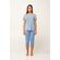 Αυτή η καλοκαιρινή γυναικεία πυτζάμα είναι μια όμορφη πρόταση με εκλεπτυσμένη θηλυκότητα και φρεσκάδα. Κατασκευασμένη από LENZING Tencel Modal Micro, χαρίζει εξαιρετικά απαλή αίσθηση στο σώμα. Αποτελείται από μπλούζα με κοντό μανίκι και πατιλέτα σε ένα μοτίβο φύλλων απαλών γαλάζιων αποχρώσεων με λευκές λεπτομέρειες. Το σετ συμπληρώνει ένα μονόχρωμο κάπρι παντελόνι που ισορροπεί το σύνολο. Μια ιδανική επιλογή για ξεκούραστες νύχτες και χαλαρά πρωινά.