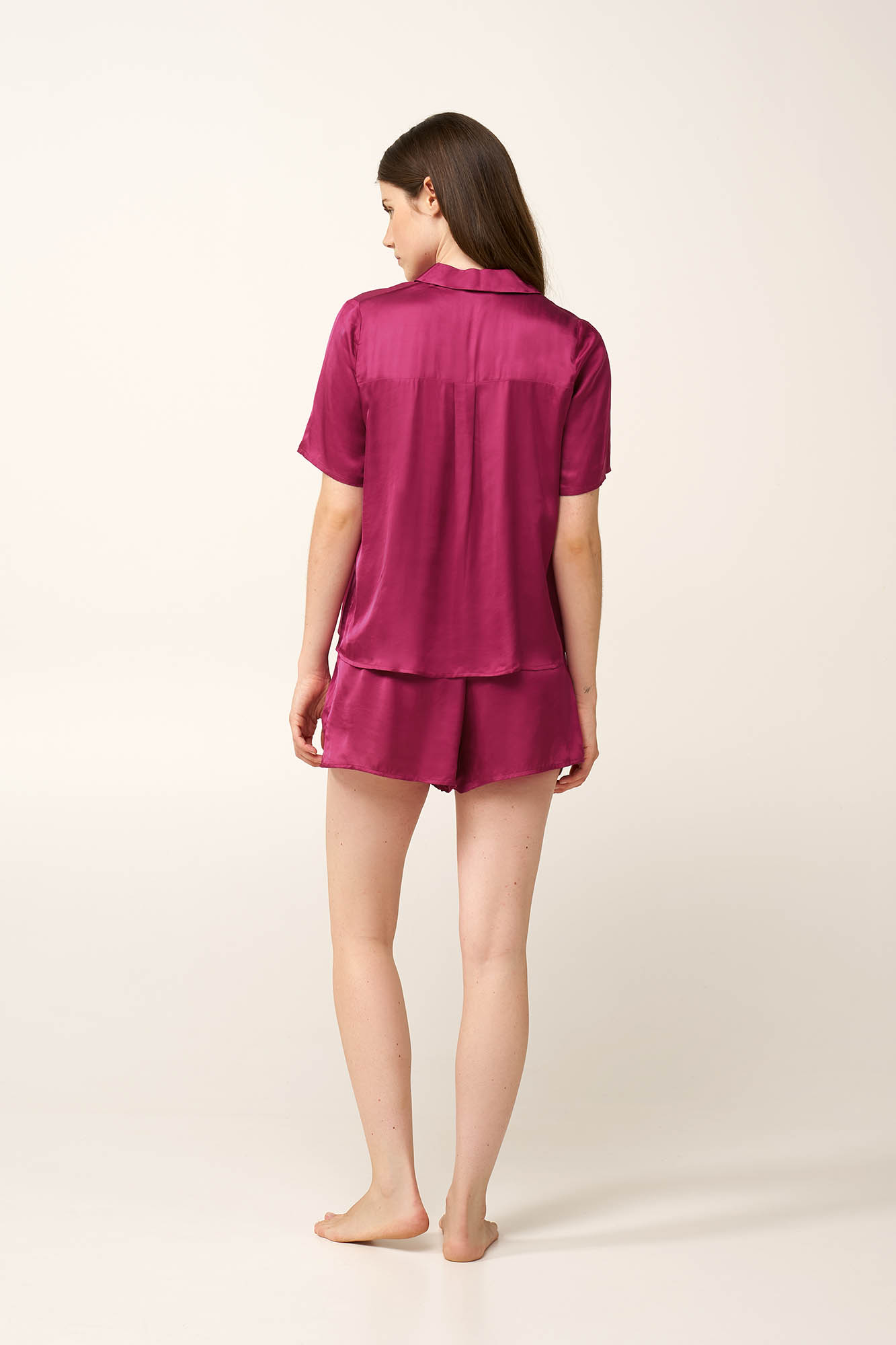 Ανακαλύψτε ένα διαχρονικό σετ γυναικείες πυτζάμες, κατασκευασμένο από λεία και απαλή σατέν viscose. Διακριτικά φωτεινό και εξαιρετικά άνετο είναι σχεδιασμένο με κλασικό κουμπωτό πάνω μέρος και κοντό παντελόνι, που κινείται φυσικά με το σώμα, καθιστώντας το ιδανικό για χαλάρωση, ξεκούραστο ύπνο ή ήσυχες βραδιές στο σπίτι, συνδυάζοντας κομψότητα και διαχρονικό χαρακτήρα.