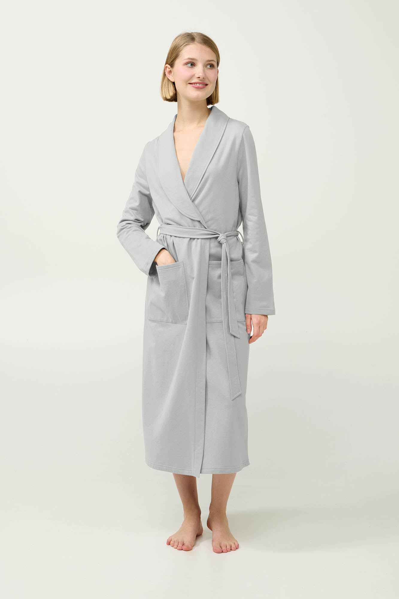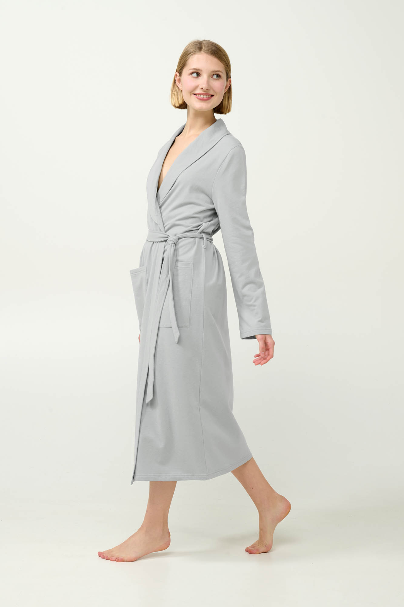 Προσθέστε στη γκαρνταρόμπα σας μα κλασική χειμερινή γυναικεία ρόμπα, κατασκευασμένη από 100% βαμβάκι φούτερ για φυσικά ζεστή και απαλή αίσθηση. Σχεδιασμένη με διαχρονικό κρουαζέ σχέδιο, δένει εύκολα με ζώνη για άνετη και ρυθμιζόμενη εφαρμογή. Οι πλαϊνές τσέπες προσθέτουν πρακτικότητα, και μπορείτε να την φορέσετε πάνω από το αγαπημένο σας νυχτικό ένα χαλαρό απόγευμα στον καναπέ.