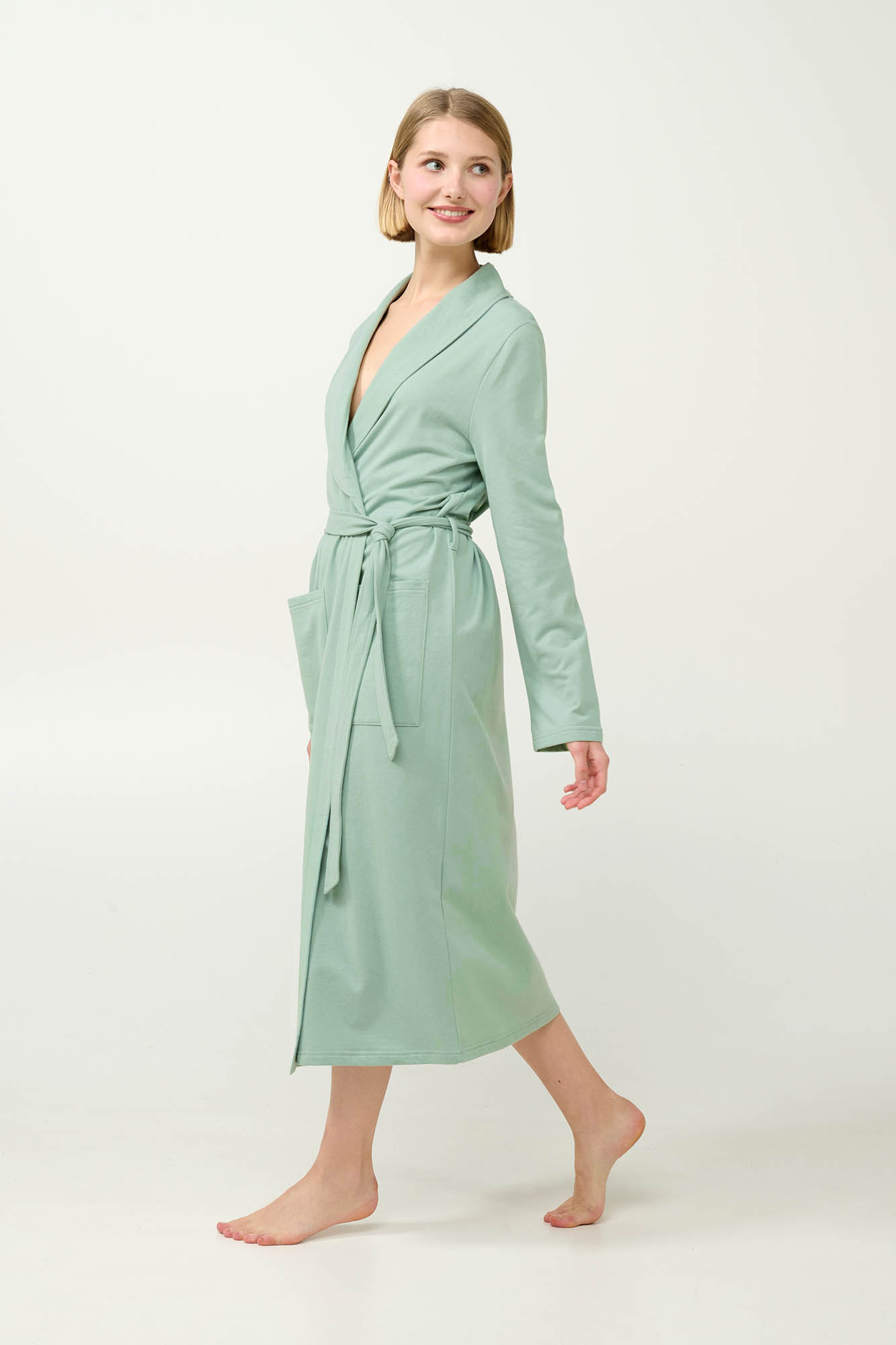 Προσθέστε στη γκαρνταρόμπα σας μα κλασική χειμερινή γυναικεία ρόμπα, κατασκευασμένη από 100% βαμβάκι φούτερ για φυσικά ζεστή και απαλή αίσθηση. Σχεδιασμένη με διαχρονικό κρουαζέ σχέδιο, δένει εύκολα με ζώνη για άνετη και ρυθμιζόμενη εφαρμογή. Οι πλαϊνές τσέπες προσθέτουν πρακτικότητα, και μπορείτε να την φορέσετε πάνω από το αγαπημένο σας νυχτικό ένα χαλαρό απόγευμα στον καναπέ.