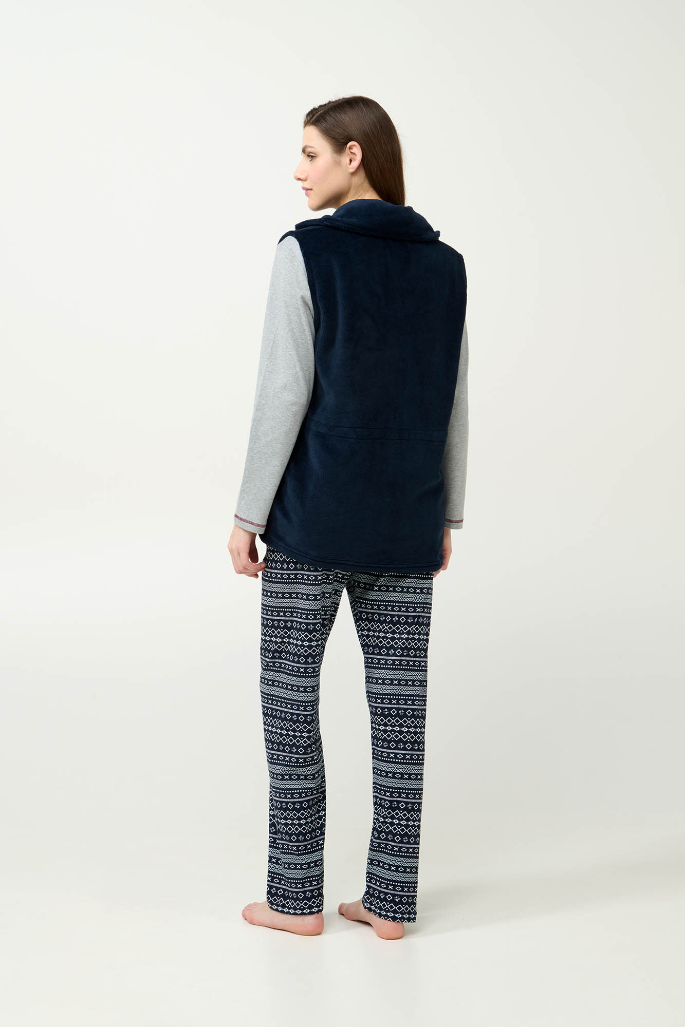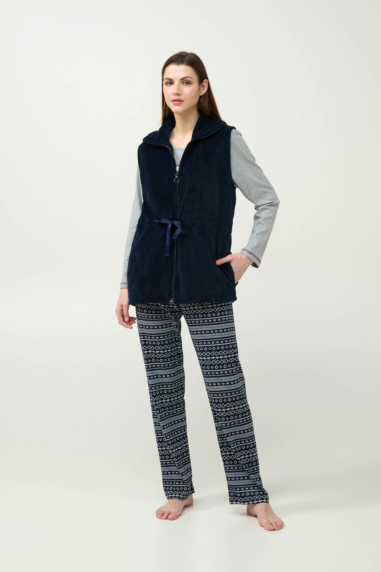 Προσθέστε στη συλλογή σας ένα μονόχρωμο γυναικείο γιλέκο Σχεδιασμένο για άνεση και ευκολία, διαθέτει φερμουάρ μπροστά, πρακτικές πλαϊνές τσέπες και ρυθμιζόμενη μέση για βέλτιστη εφαρμογή. Το απαλό fleece ύφασμα προσφέρει ζεστή αίσθηση στο σώμα, καθιστώντας το ιδανικό για χαλαρές μέρες στο σπίτι φορώντας το πάνω από τις αγαπημένες σας πυτζάμες.