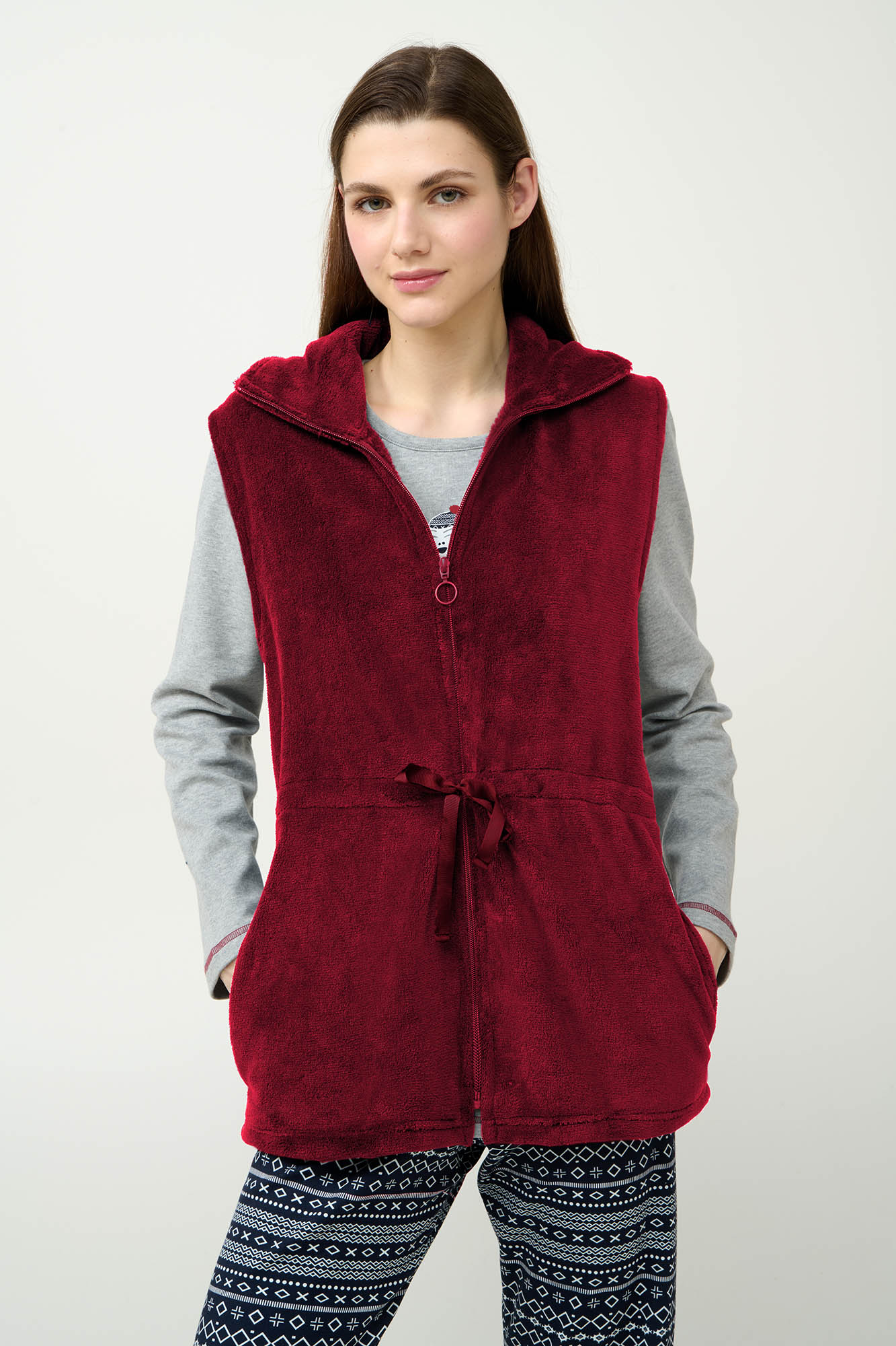 Προσθέστε στη συλλογή σας ένα μονόχρωμο γυναικείο γιλέκο Σχεδιασμένο για άνεση και ευκολία, διαθέτει φερμουάρ μπροστά, πρακτικές πλαϊνές τσέπες και ρυθμιζόμενη μέση για βέλτιστη εφαρμογή. Το απαλό fleece ύφασμα προσφέρει ζεστή αίσθηση στο σώμα, καθιστώντας το ιδανικό για χαλαρές μέρες στο σπίτι φορώντας το πάνω από τις αγαπημένες σας πυτζάμες.