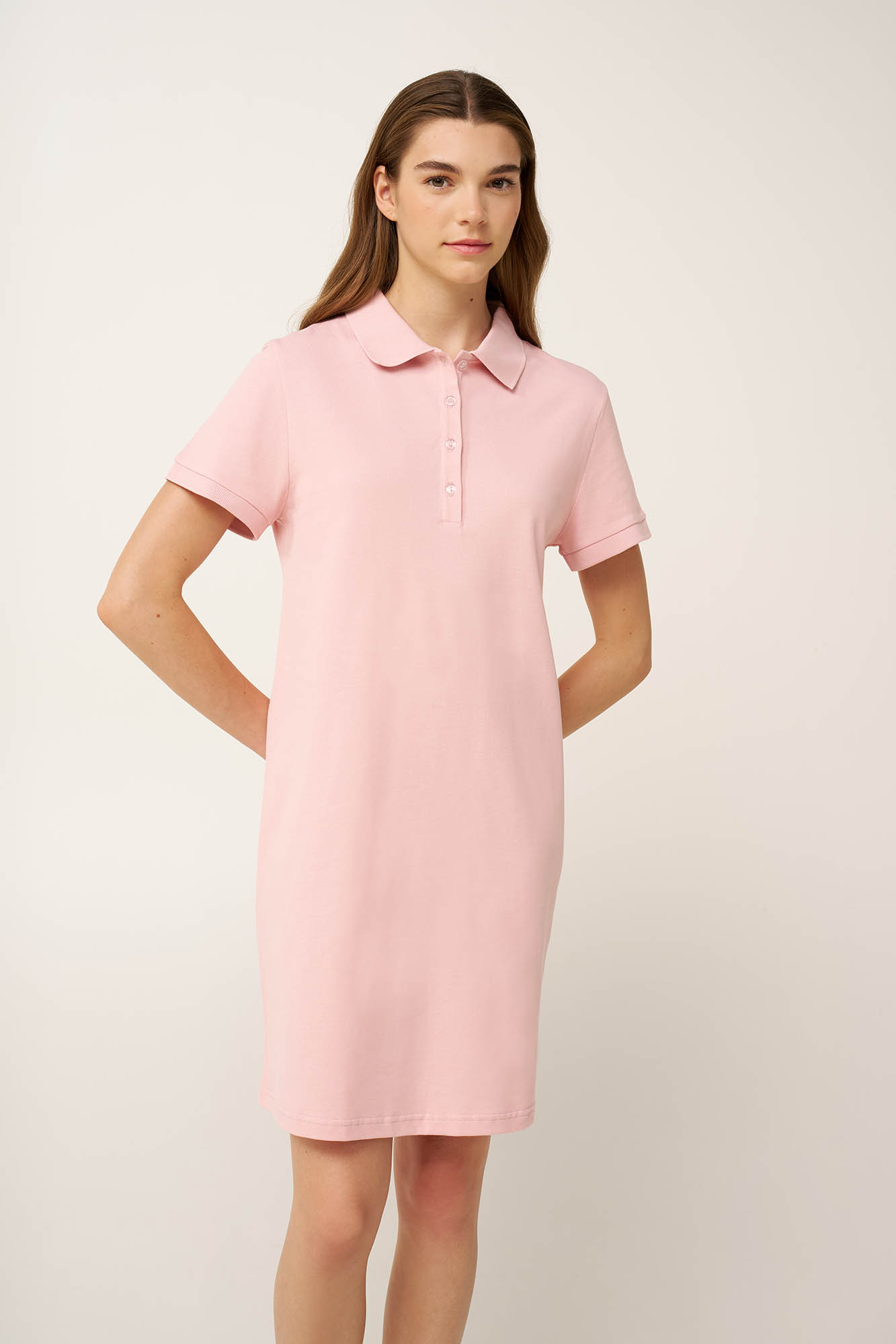 Προσθέστε στην γκαρνταρόμπα σας αυτό το γυναικείο polo φόρεμα, κατασκευασμένο από υ100% βαμβάκι pique για μαλακή, διαπνέουσα αίσθηση που σας κρατά άνετη όλη μέρα. Ο κλασικός γιακάς polo και τα κοντά μανίκια δημιουργούν κομψή σιλουέτα, ενώ το σταθερό ύφασμα διατηρεί το σχήμα του φορέματος χωρίς να περιορίζει. Ιδανικό για casual εξόδους ή αυθόρμητες αποδράσεις, συνδυάζοντας διαχρονική κομψότητα με σπορ διάθεση.