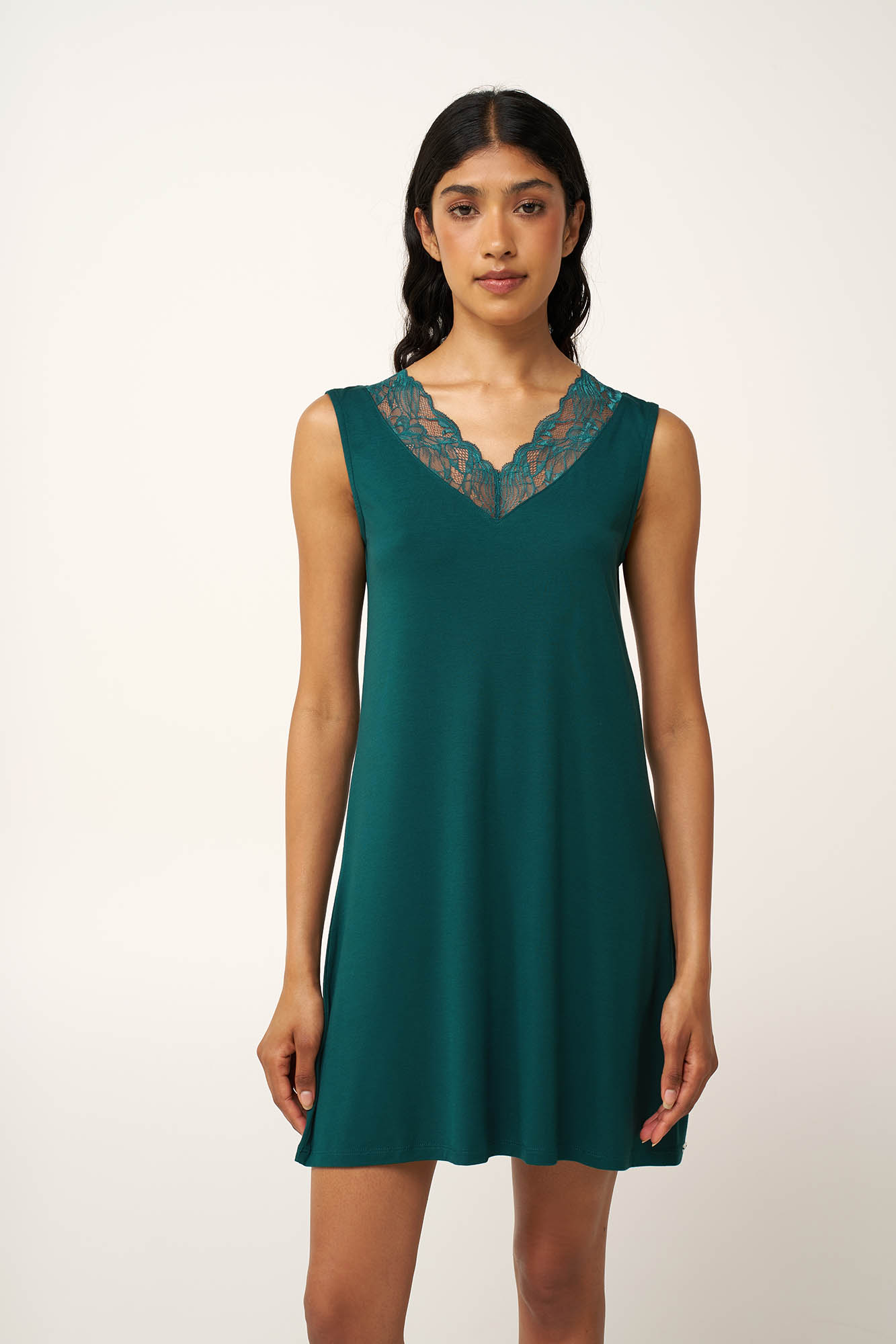 Απολαύστε διαχρονική θηλυκότητα με αυτό το ελαφρύ καλοκαιρινό νυχτικό, κατασκευασμένο από LENZING Tencel Modal Micro με μεταξένια απαλότητα και εξαιρετική διαπνοή. Σχεδιασμένο με λαιμόκοψη V μπροστά και πίσω, διακοσμημένη με δαντέλα που ενισχύει το θηλυκό του χαρακτήρα. Διαχρονικό και αέρινο είναι μια ιδανική επιλογή για τις πιο ζεστές καλοκαιρινές ημέρες.
