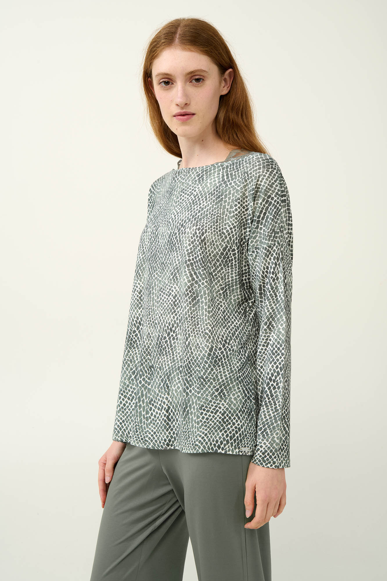 Προσθέστε μια νότα πολυτέλειας στις στιγμές χαλάρωσης με ένα σετ γυναικείες από εξαιρετικά απαλό στην αφή LENZING Tencel Modal Micro, που αγκαλιάζει ευχάριστα το σώμα. Το επάνω μέρος είναι ένα εκλεπτυσμένο animal print σε πράσινη ανθρακί απόχρωση με διακριτικές λεπτομέρειες από δαντέλα στη λαιμόκοψη, ενώ το παντελόνι είναι μονόχρωμο και ολοκληρώνει αρμονικά το σύνολο. Μια υπέροχη επιλογή για κάθε στιγμή στο σπίτι.