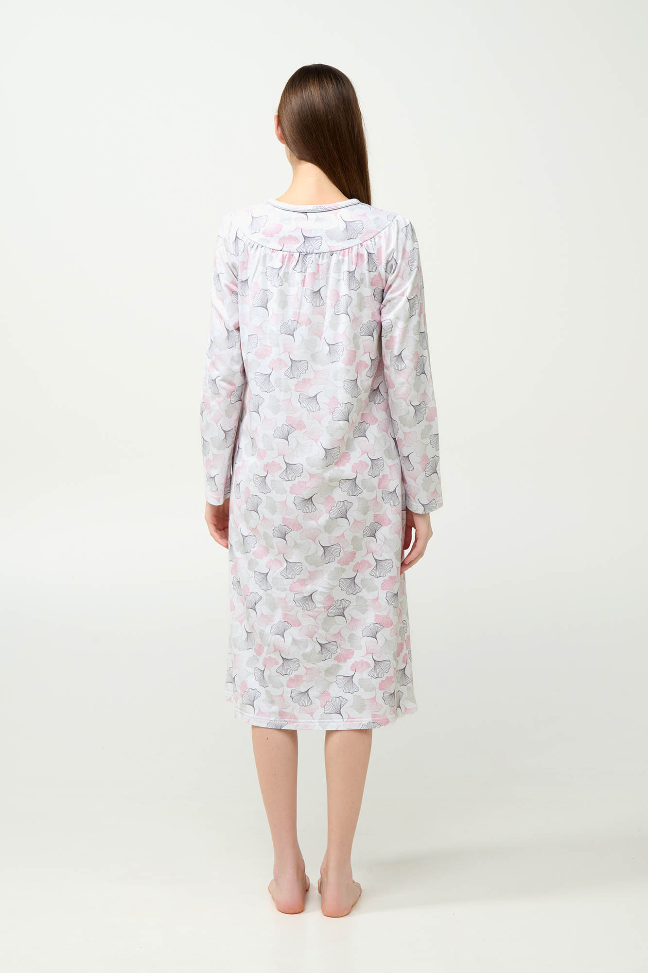 Προσθέστε στη γκαρνταρόμπα σας ένα κλασικό νυχτικό, κατασκευασμένο από 100% βαμβάκι φούτερ που προσφέρει ζεστή αίσθηση στο σώμα για τις κρύες ημέρες του χειμώνα. Είναι σχεδιασμένο με πατιλέτα και διακοσμημένο με κομψό μοτίβο από παστέλ φύλλα, προσθέτοντας διακριτική φινέτσα και διαχρονικό στυλ. Ένα νυχτικό που θα φορέσετε για χρόνια στις στιγμές ξεκούρασής σας.