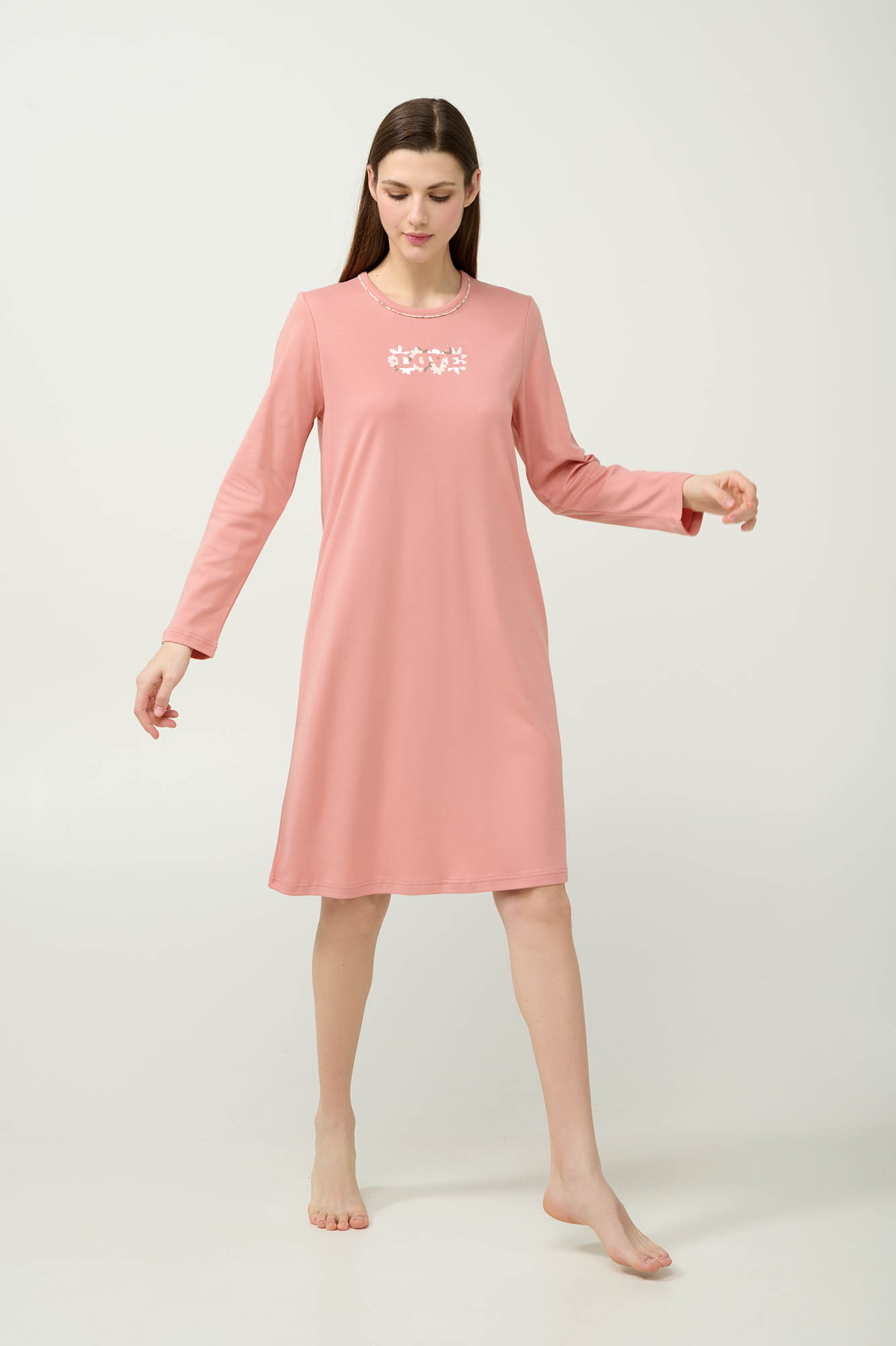 Προσθέστε στην γκαρνταρόμπα σας αυτό το χειμερινό νυχτικό από 100% βαμβάκι interlock, που αγκαλιάζει απαλά το σώμα και επιτρέπει στο δέρμα να αναπνέει. Σχεδιασμένο με μακριά μανίκια, διακριτικό τύπωμα στο στήθος και άνετη γραμμή, προσφέρει πρακτικότητα και άνεση. Ένα όμορφο νυχτικό που θα φοράτε με χαρά κάθε μέρα του χειμώνα.