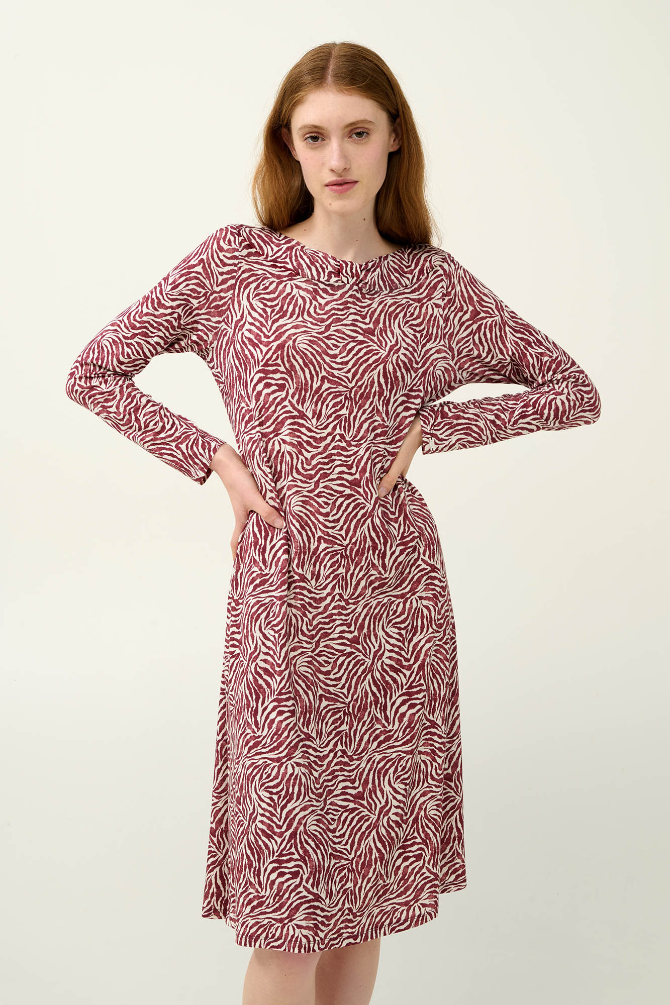 Χαρίστε στον εαυτό σας μια αίσθηση πολυτέλειας με αυτό το κομψό χειμερινό νυχτικό, κατασκευασμένο από εξαιρετικά απαλό ύφασμα LENZING Tencel Modal Micro. Σχεδιασμένο με εντυπωσιακό ζέβρα μοτίβο σε μπορντό και λευκές αποχρώσεις και μακριά μανίκια, προσφέρει άνεση και κομψότητα τις κρύες μέρες του χειμώνα. Η μεταξένια υφή του αγκαλιάζει απαλά το δέρμα, χαρίζοντας μοναδική αίσθηση άνεσης, για έναν ήρεμο ύπνο και χαλαρά πρωινά στο σπίτι.