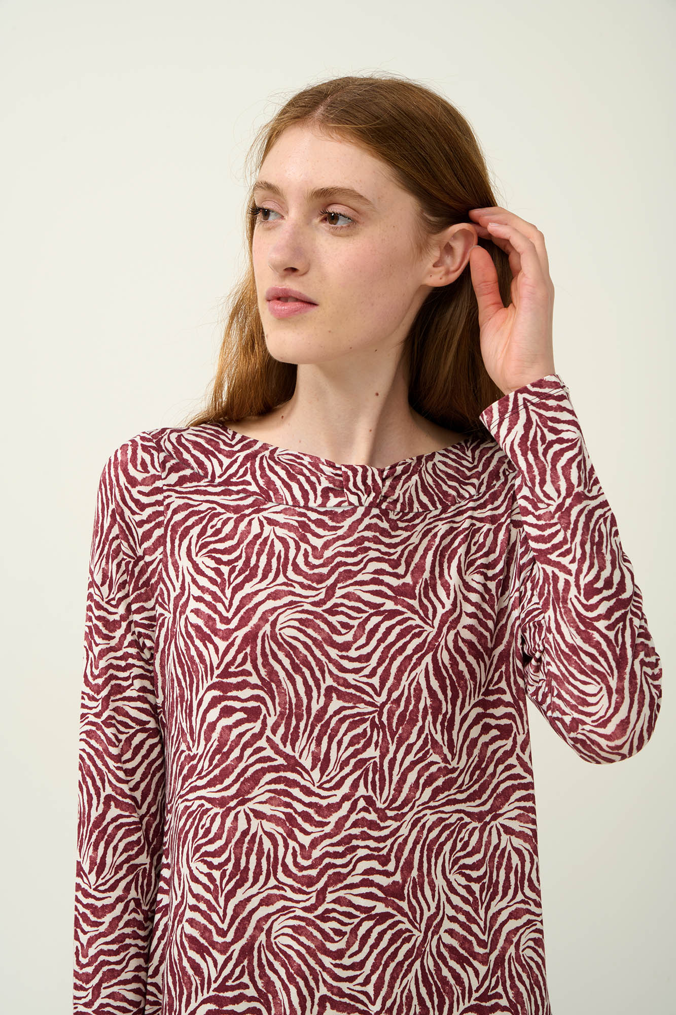 Χαρίστε στον εαυτό σας μια αίσθηση πολυτέλειας με αυτό το κομψό χειμερινό νυχτικό, κατασκευασμένο από εξαιρετικά απαλό ύφασμα LENZING Tencel Modal Micro. Σχεδιασμένο με εντυπωσιακό ζέβρα μοτίβο σε μπορντό και λευκές αποχρώσεις και μακριά μανίκια, προσφέρει άνεση και κομψότητα τις κρύες μέρες του χειμώνα. Η μεταξένια υφή του αγκαλιάζει απαλά το δέρμα, χαρίζοντας μοναδική αίσθηση άνεσης, για έναν ήρεμο ύπνο και χαλαρά πρωινά στο σπίτι.