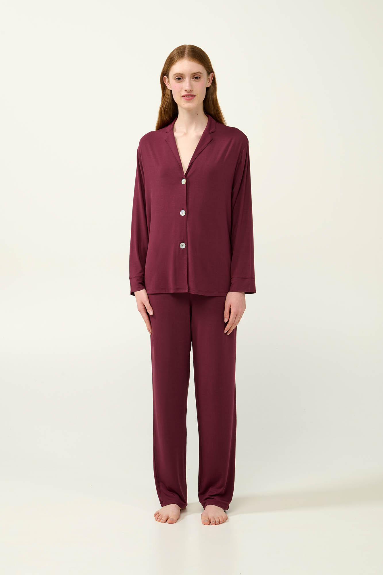 Ανακαλύψτε την απόλυτη χειμερινή άνεση με αυτό το κομψό γυναικείο σετ πυτζάμες, κατασκευασμένο από LENZING Tencel Modal Micro για εξαιρετική απαλότητα και διαπνοή. Το κλασικό κουμπωτό τοπ με μακριά μανίκια προσφέρει διαχρονική κομψότητα, ενώ μια διακριτική πιέτα στη πλάτη χαρίζει άνεση και βέλτιστη εφαρμογή. Μια ιδανική επιλογή που συνδυάζει απλότητα και διαχρονικότητα που θα απολαύσετε για χρόνια.