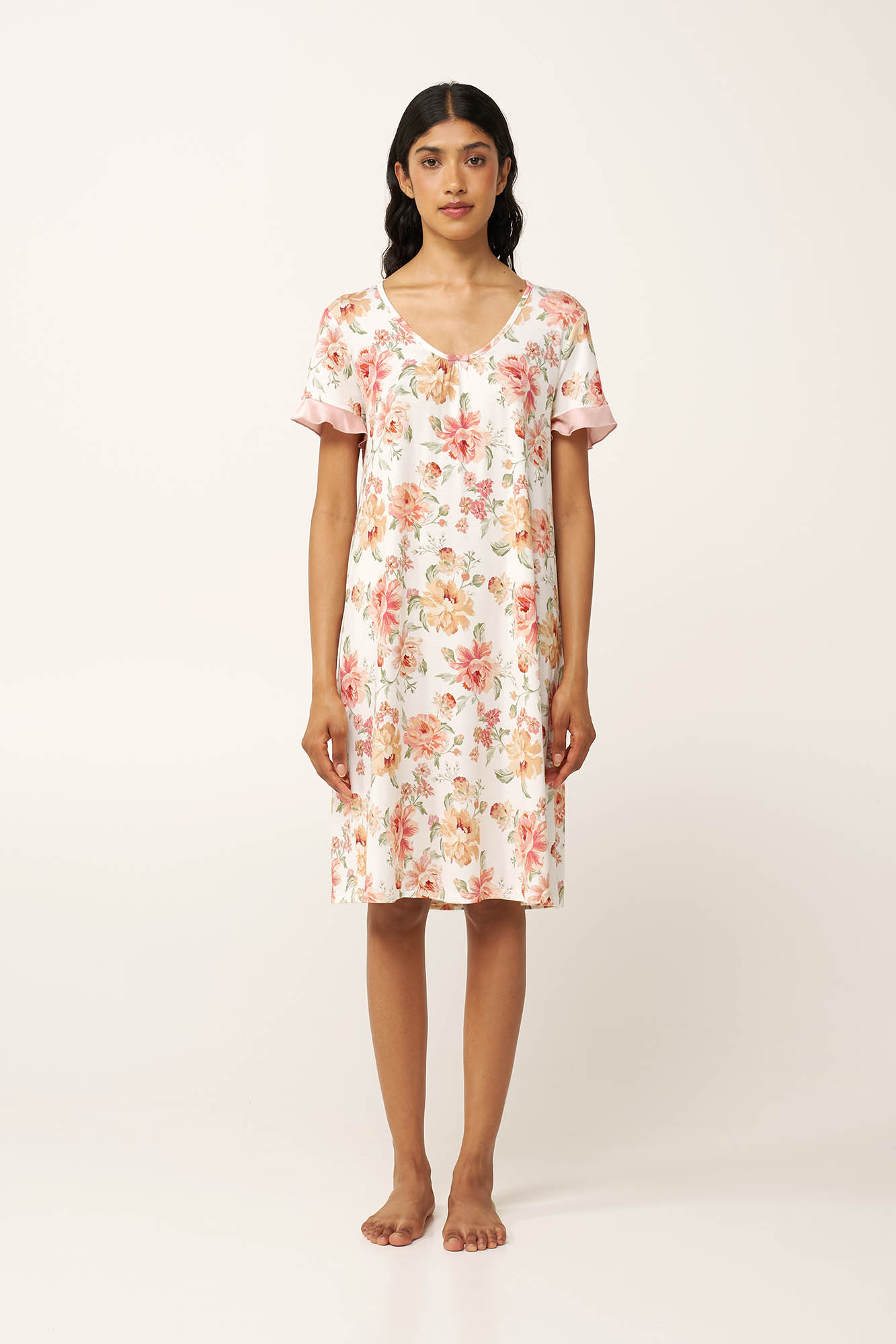 Απολαύστε τον ιδανικό συνδυασμό άνεσης και θηλυκής γοητείας με αυτό το καλοκαιρινό νυχτικό, κατασκευασμένο από μεταξένια απαλό LENZING Tencel Modal Micro, που προσφέρει ανάλαφρη, διαπνέουσα αίσθηση στο σώμα, ιδανική για ζεστές καλοκαιρινές νύχτες. Διακοσμημένο με vintage φλοράλ μοτίβο, λεπτομέρειες από σιφόν στα μανίκια και διακριτικές σούρες στο στήθος που προσθέτουν μια ρομαντική και κομψή νότα. ΜΙα διαχρονική επιλογή που χαρίζει ξεκούραση και άνεση όλη τη νύχτα.