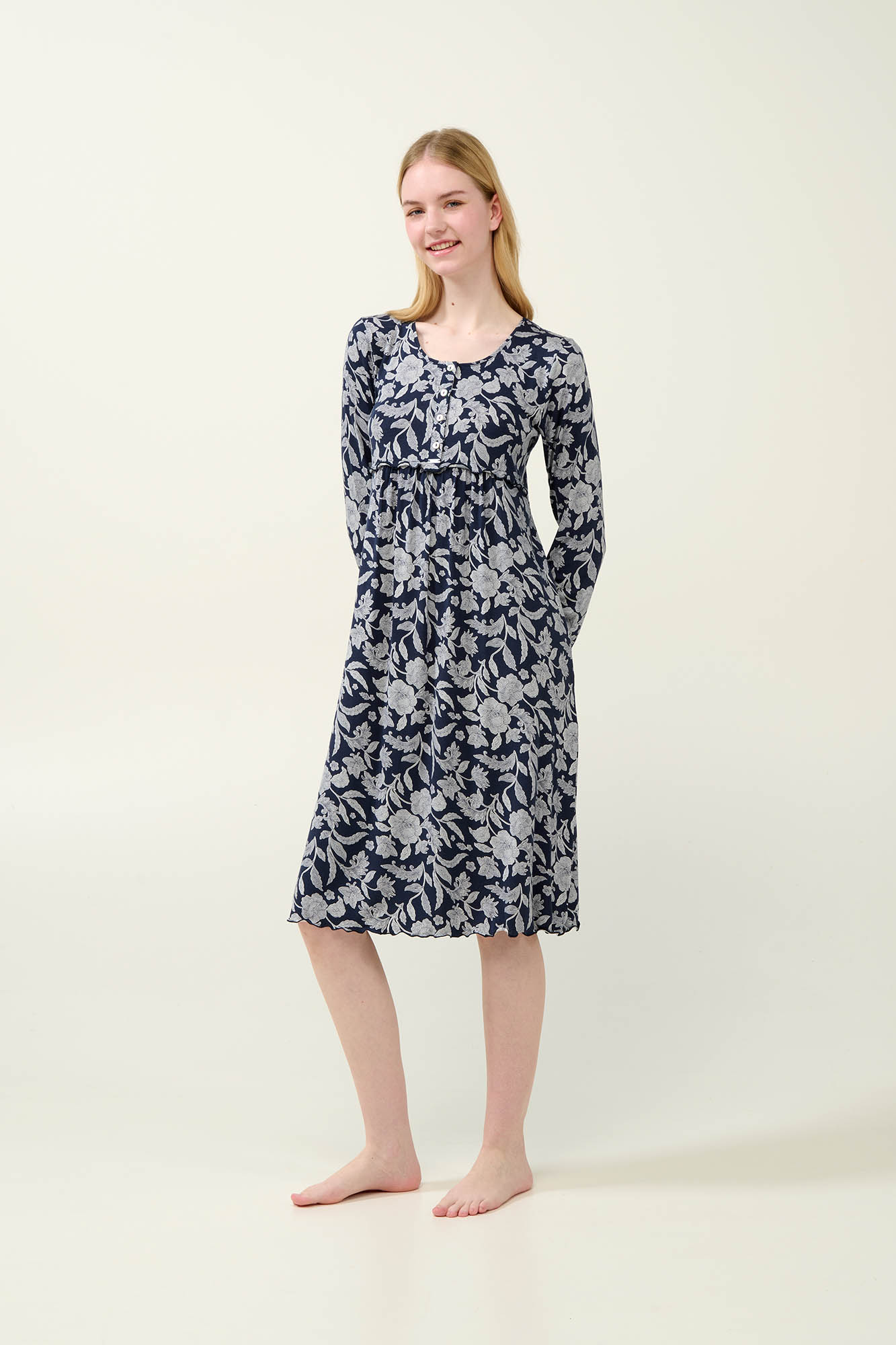 Αφεθείτε στην απαλότητα που χαρίζει αυτό το φλοράλ νυχτικό εγκυμοσύνης και θηλασμού, φτιαγμένο από LENZING Tencel Modal Micro που προφέρει εξαιρετική διαπνοή και βέλτιστη εφαρμογή. Σχεδιασμένο για να σας συνοδεύει σε κάθε στάδιο της μητρότητας, διαθέτει πρακτική πατιλέτα που διευκολύνει τον θηλασμό και σούρες κάτω από το στήθος που προσφέρουν επιπλέον χώρο και άνεση στην περιοχή της κοιλιάς. Ένα νυχτικό που προσφέρει απαλότητα, άνεση και λειτουργικότητα σε κάθε του λεπτομέρεια.