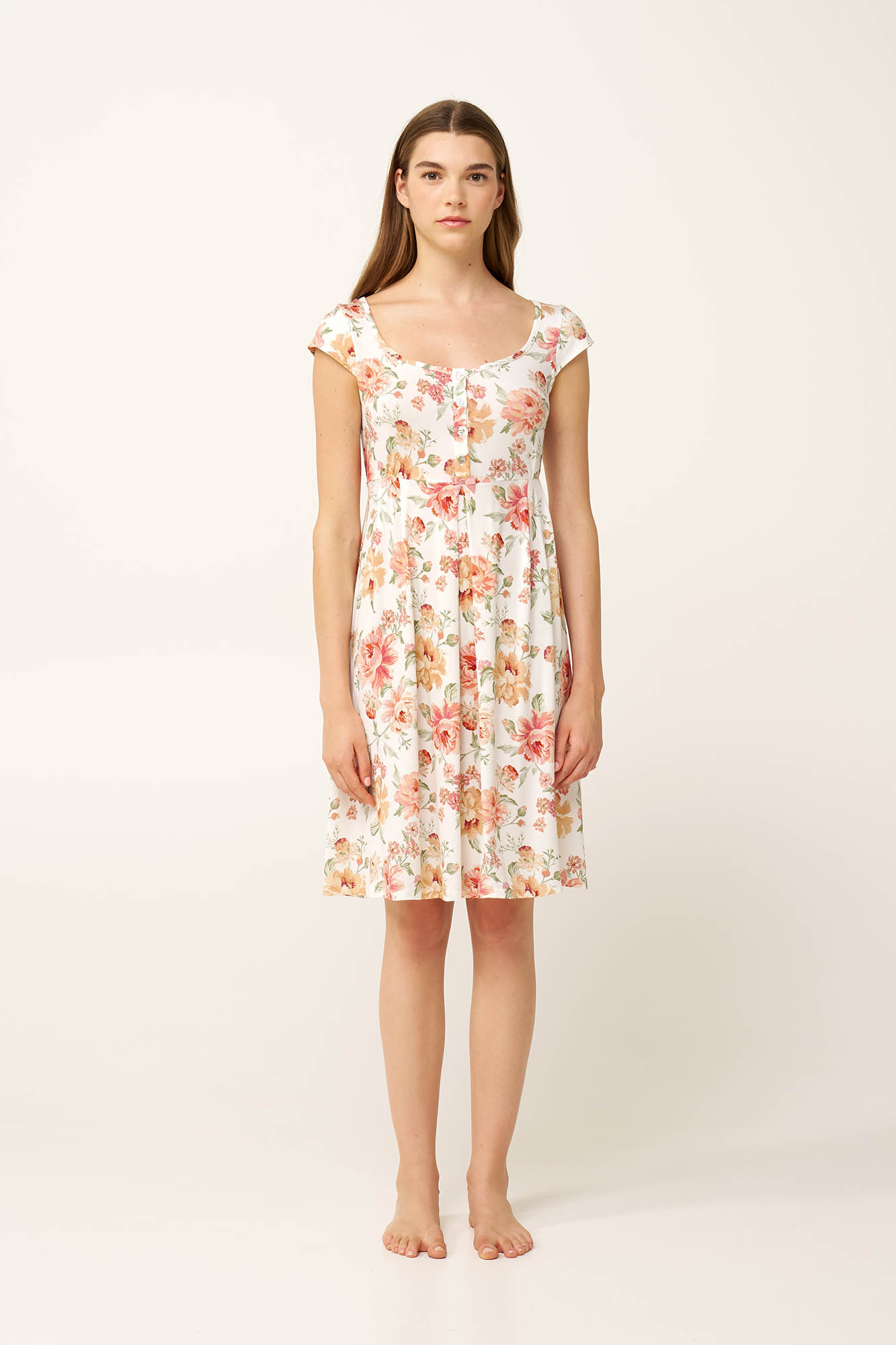 Επιλέξτε ένα νυχτικό εγκυμοσύνης και θηλασμού, κατασκευασμένο από απαλό και διαπνέον LENZING Tencel Modal Micro, με ανάλαφρη και άνετη εφαρμογή. Είναι διακοσμημένο με ένα vintage φλοράλ μοτίβο με πατιλέτα που διευκολύνει το θηλασμό. Σχεδιασμένο με πιέτα κάτω από το στήθος για να χαρίσει περισσότερο χώρο στην περιοχή της κοιλιάς και πιέτες στο πίσω μέρος που δένει με μια διακριτική, ρομαντική κορδέλα για μεγαλύτερη άνεση και προσαρμοζόμενη εφαρμογή. Ιδανικό για μέλλουσες και νέες μητέρες, αυτό το νυχτικό συνδυάζει πρακτικότητα που θα απολαύσετε.