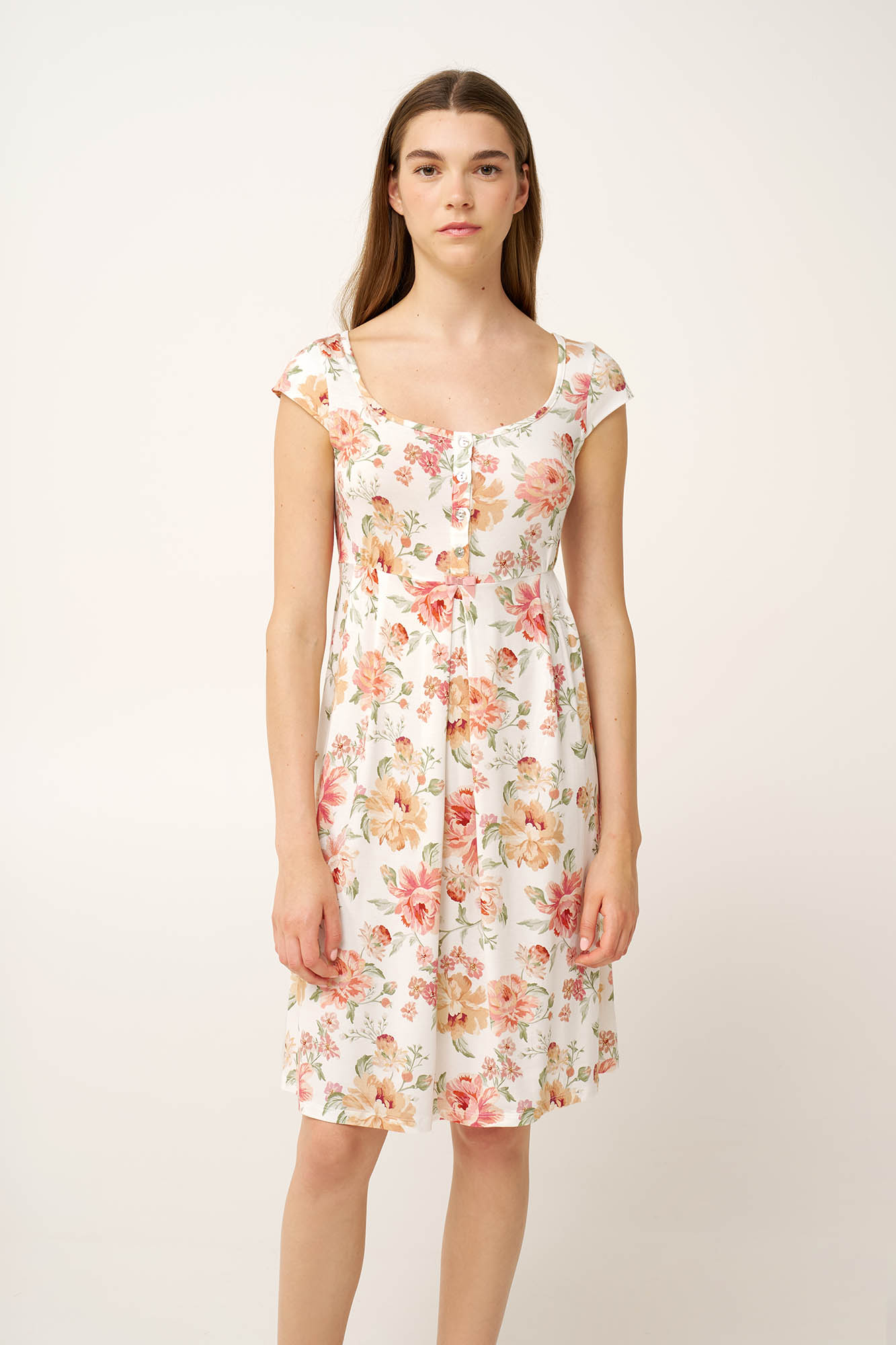 Επιλέξτε ένα νυχτικό εγκυμοσύνης και θηλασμού, κατασκευασμένο από απαλό και διαπνέον LENZING Tencel Modal Micro, με ανάλαφρη και άνετη εφαρμογή. Είναι διακοσμημένο με ένα vintage φλοράλ μοτίβο με πατιλέτα που διευκολύνει το θηλασμό. Σχεδιασμένο με πιέτα κάτω από το στήθος για να χαρίσει περισσότερο χώρο στην περιοχή της κοιλιάς και πιέτες στο πίσω μέρος που δένει με μια διακριτική, ρομαντική κορδέλα για μεγαλύτερη άνεση και προσαρμοζόμενη εφαρμογή. Ιδανικό για μέλλουσες και νέες μητέρες, αυτό το νυχτικό συνδυάζει πρακτικότητα που θα απολαύσετε.