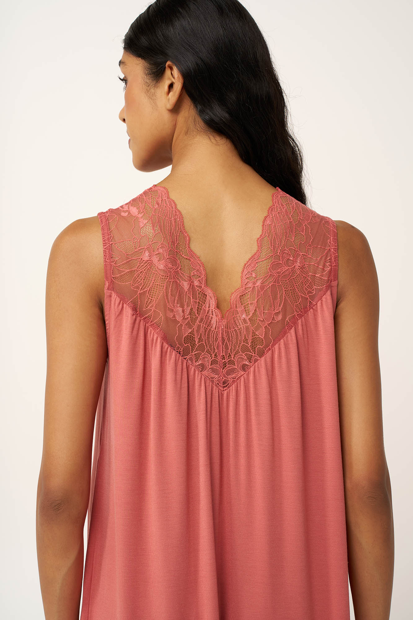 Απαλό, κομψό και ανεπιτήδευτα θηλυκό, αυτό το γυναικείο νυχτικό είναι κατασκευασμένο από LENZING Tencel Modal Micro, προσφέροντας ανάλαφρη και διαπνέουσα αίσθηση, ιδανική για καλοκαιρινές νύχτες. Σχεδιασμένο να αγκαλιάζει φυσικά το σώμα, με σούρες στο στήθος για μέγιστη άνεση και ελευθερία κινήσεων. Η εντυπωσιακή δαντέλα στη λαιμόκοψη, μπροστά και πίσω, προσθέτει μια ρομαντική πινελιά και αναδεικνύει το διαχρονική του θηλυκότητα.